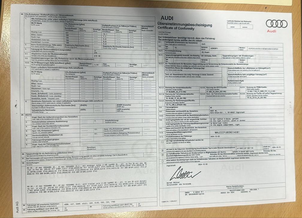Optionale Ausstattung Adaptiver Fahrassistent plus Audi Phone Box Metallic-Lackierung Pack Exterieur S-Line Vorbereitung für Anhängevorrichtung Das Fahrzeug wird im aktuellen Zustand („ab Platz“) und ohne jegliche Garantie verkauft. Fahrzeug hat seinem Alter nach Gebrauchspuren , läuft einwandfrei. Es wurde keine umfassende mechanische oder technische Prüfung durch den Verkäufer durchgeführt. Das angebotene Fahrzeug befindet sich in gebrauchtem Zustand Jegliche Gewährleistung für sichtbare und unsichtbare Mängel wird, soweit gesetzlich zulässig, ausdrücklich ausgeschlossen.