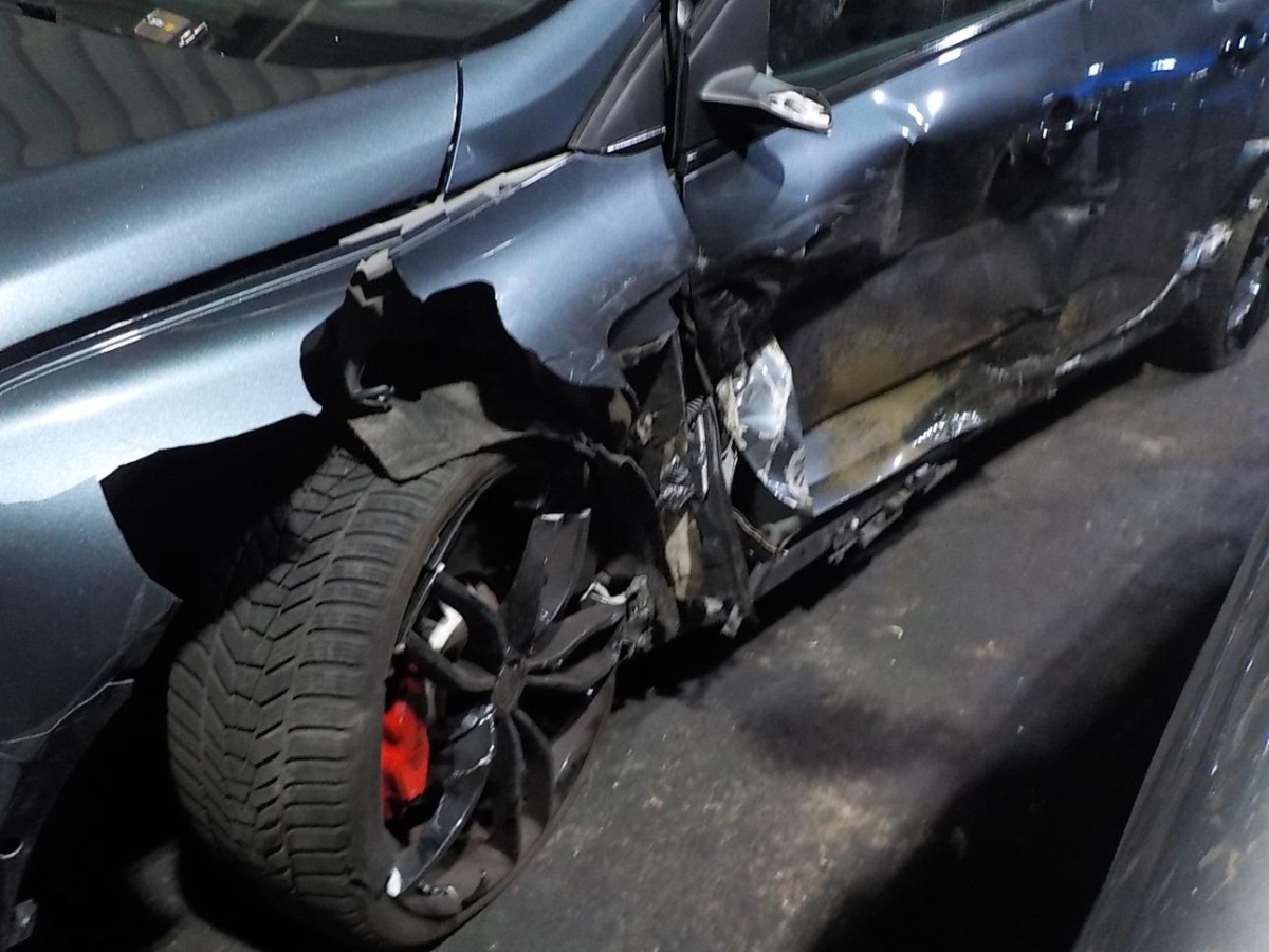 Airbag ausgelöst, Antrieb, Armaturenbrett, Diverse Anbauteile, Federbein vorne links, Front, Front links, Frontscheibe, Gurtstraffer ausgelöst, Kotflügel links, Lenkung, Motorhaube, Radaufhängung vorne links, Radhaus vorne links, Scheinwerfer links, Schweller links, Seitenwand links, Türe hinten links, Türe vorne links, Vorderachse