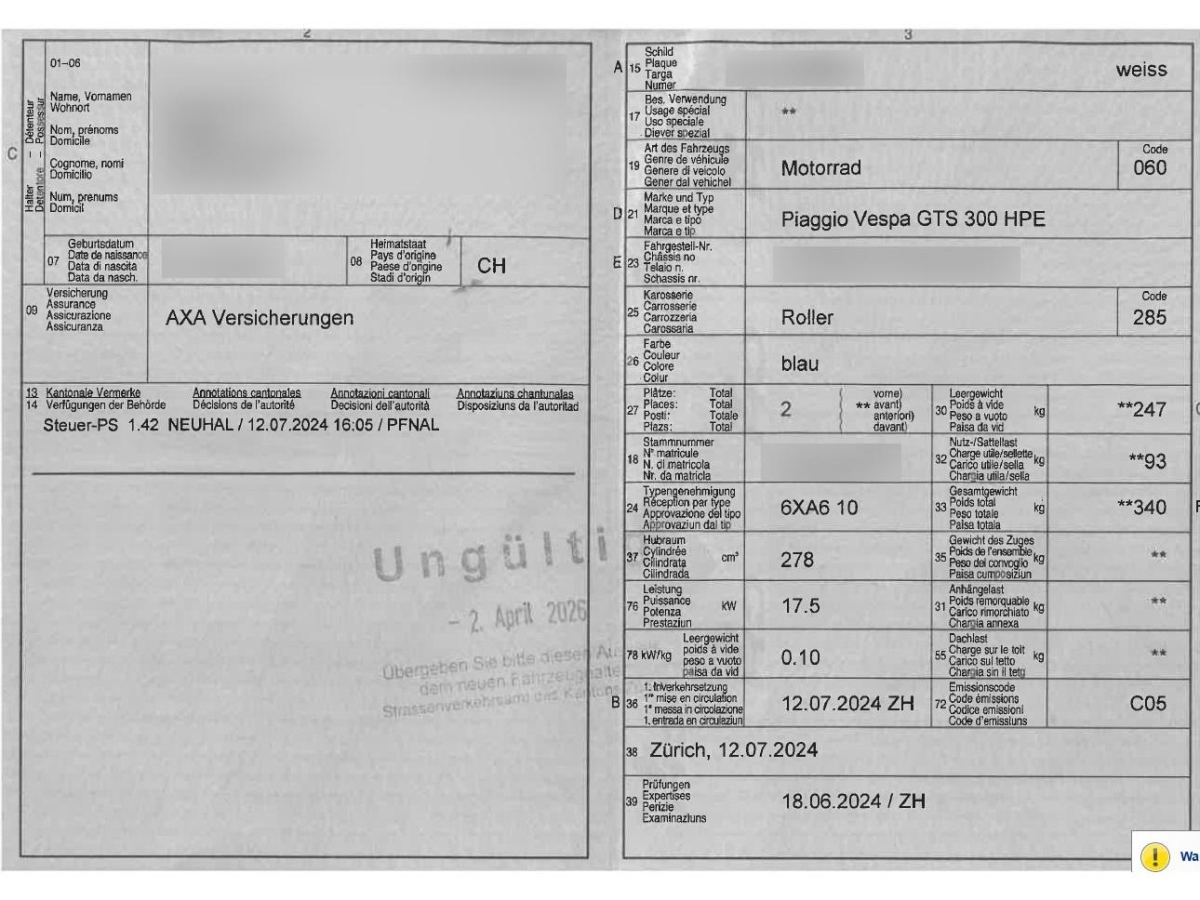 PIAGGIO Vespa GTS 300 HPE, 23 PS