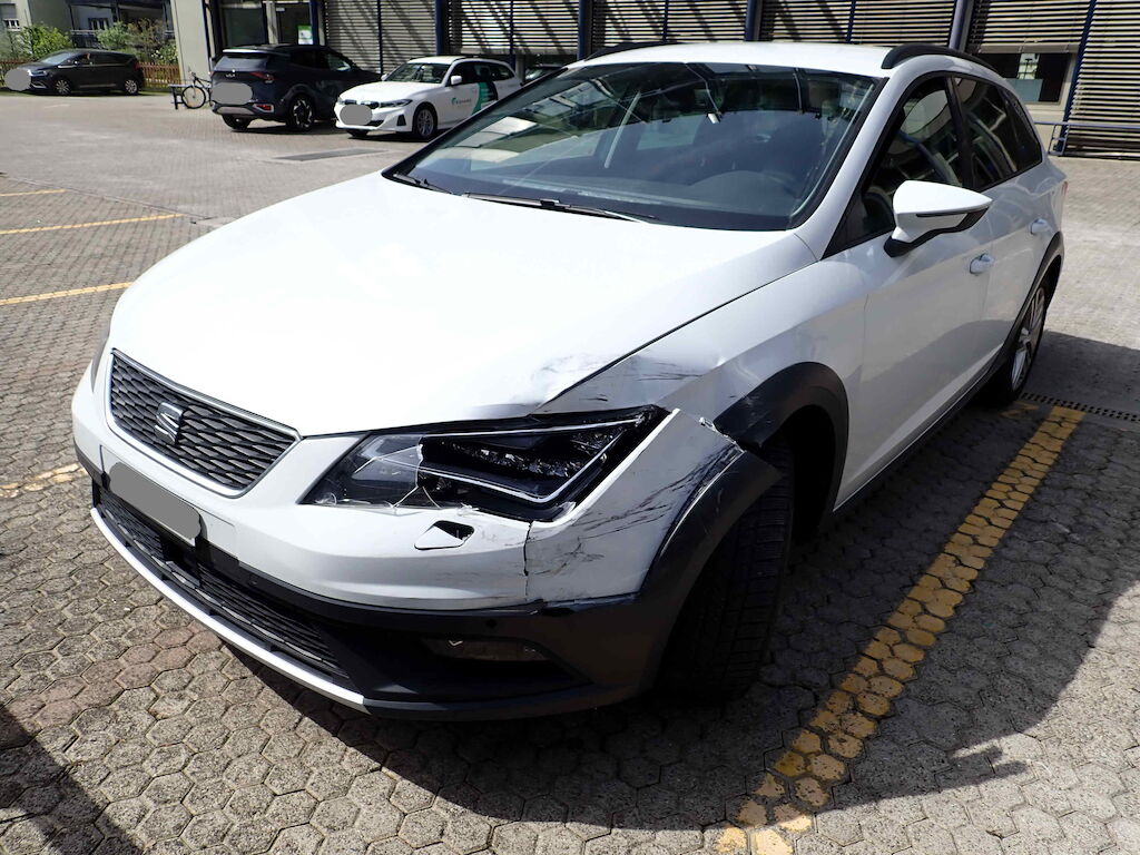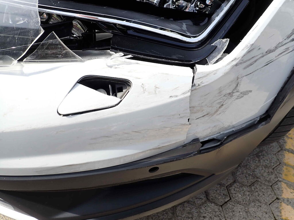 Stossfänger vorne gerissen Scheinwerfer links gebrochen Kotflügel VL stark deformiert Motorhaube stark deformiert Risiko Vorderachse und Schlossträger Motor Getriebe Vorderachse Hinterachse Airbags ausgelöst: 0 unbekannt ( Abfallcode 16.01.04ak )