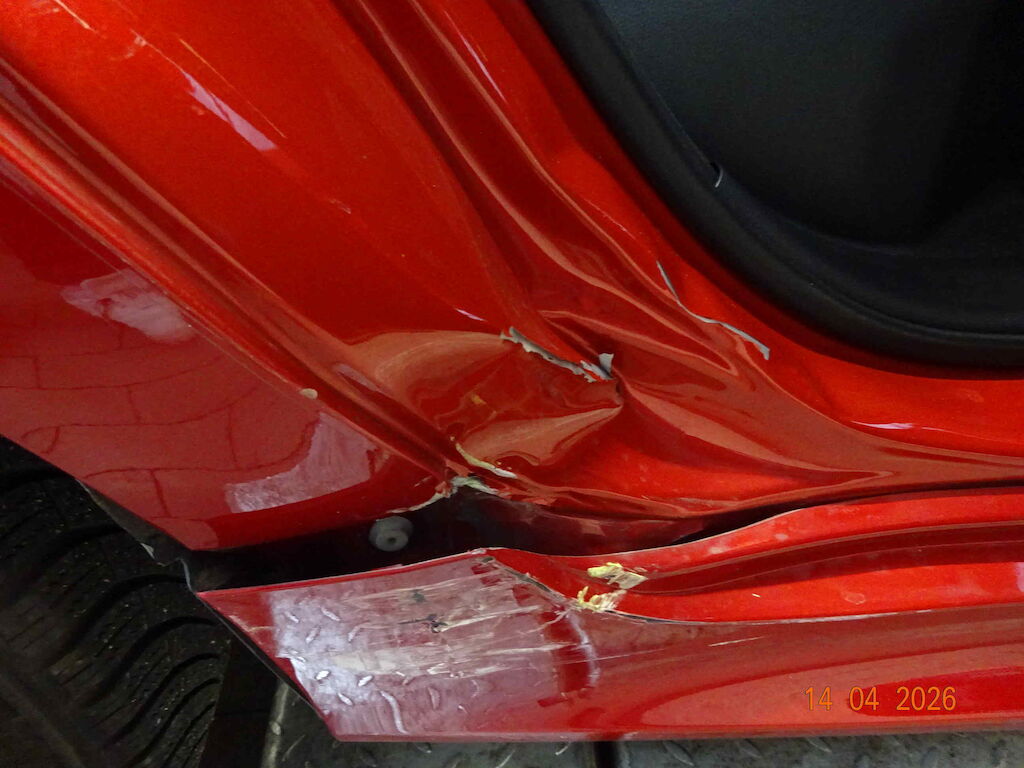 Schweller Rechts Deformiert, Seitenwand rechts gestaucht, Türfalz hinten rechts deformiert, Türe VR Deformiert, Scheinwerfer vorne rechts gebrochen, Stossstange vorne gerissen, Sensoren vorne beschädigt. Motor Getriebe Vorderachse Hinterachse Airbags ausgelöst: 0 unbekannt ( Abfallcode 16.01.04ak )