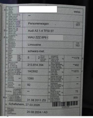 Fahrer-Informationssystem FIS Aussenspiegel elektrisch verstellbar und heizbar Radio Chorus Airbag Fahrer und Beifahrerseite Seitenairbag Fahrer und Beifahrerseite Zentralverriegelung mit Fernbedienung Elektronische Wegfahrsperre Geteilte Rücksitzlehne 1/3, 2/3 Lenksäule mit Höhen- und Längseinstellung Elektrische Fensterheber vorne ESP/ ASR/ EDS/ ABS mit EBV Seitliches Kopfairbagsystem SIDEGUARD Lenkrad 4-Speichen Aussenspiegel in Wagenfarbe Wärmeschutzverglasung Audi hill hold assist (Berganfahrassistent) Servotronic geschwindigkeitsabhängig Leichtmetallräder 16" Keine Gewähr auf die Angaben der Serienausstattungen