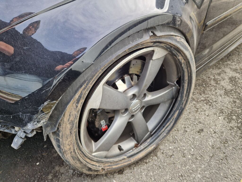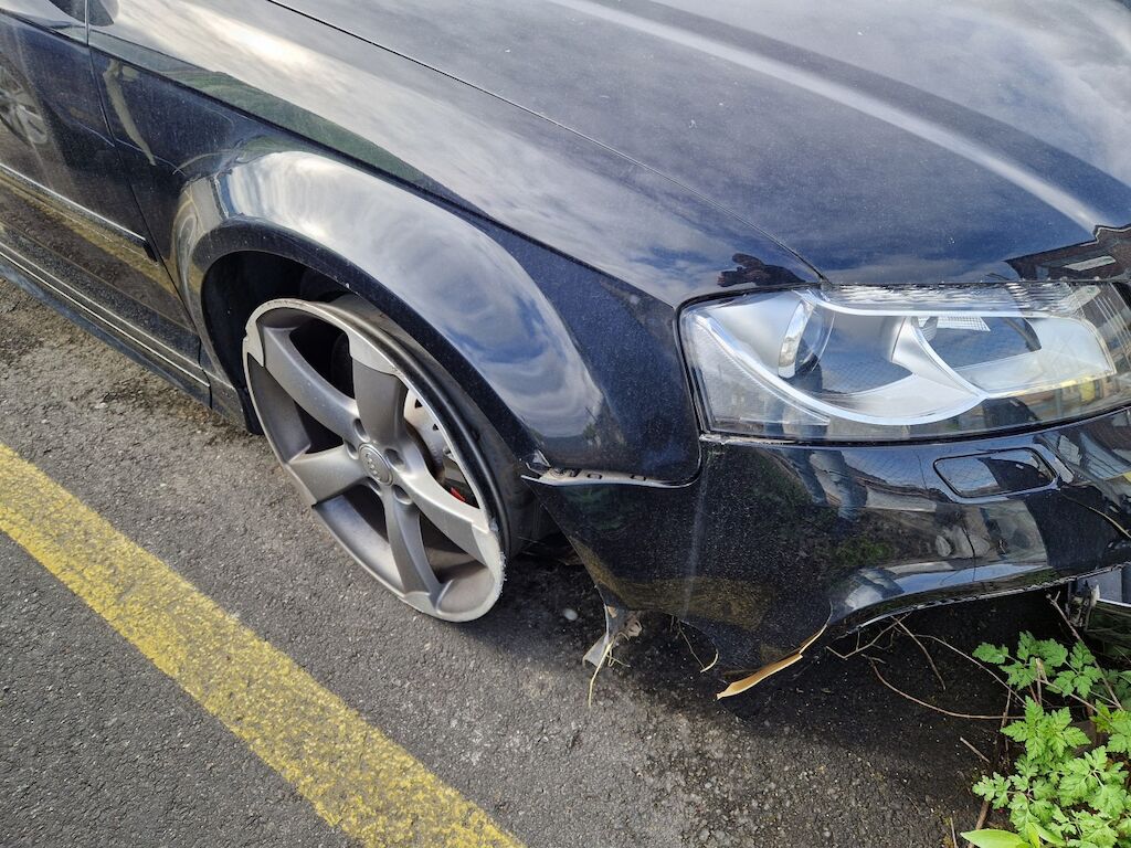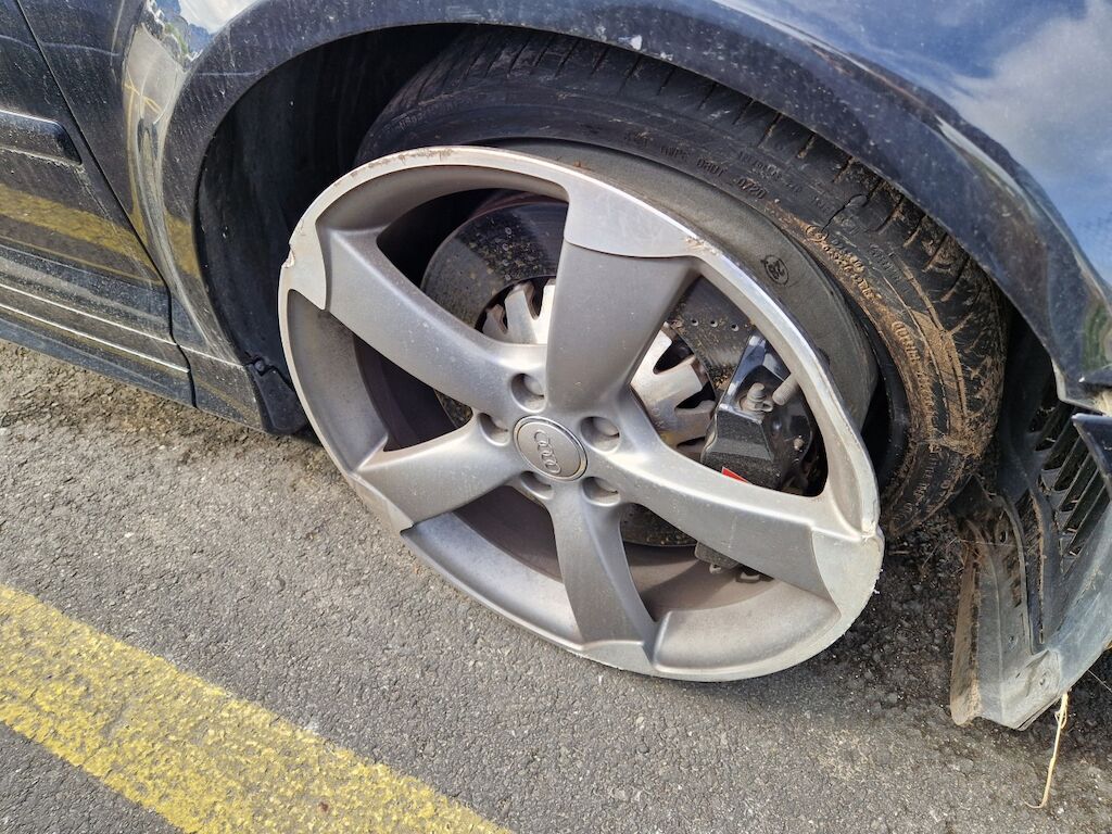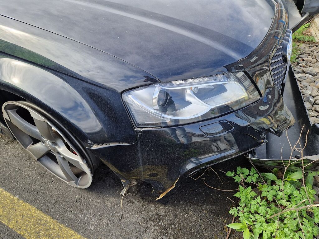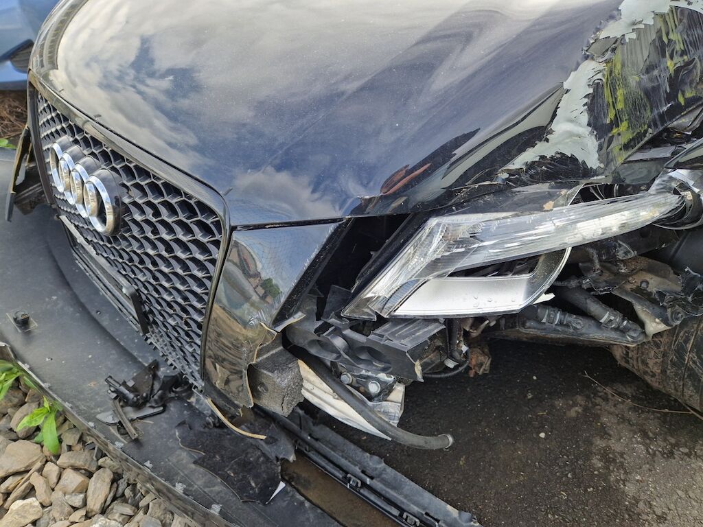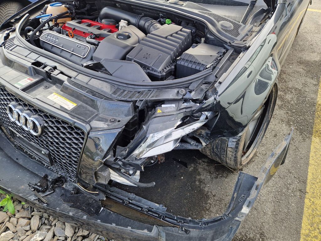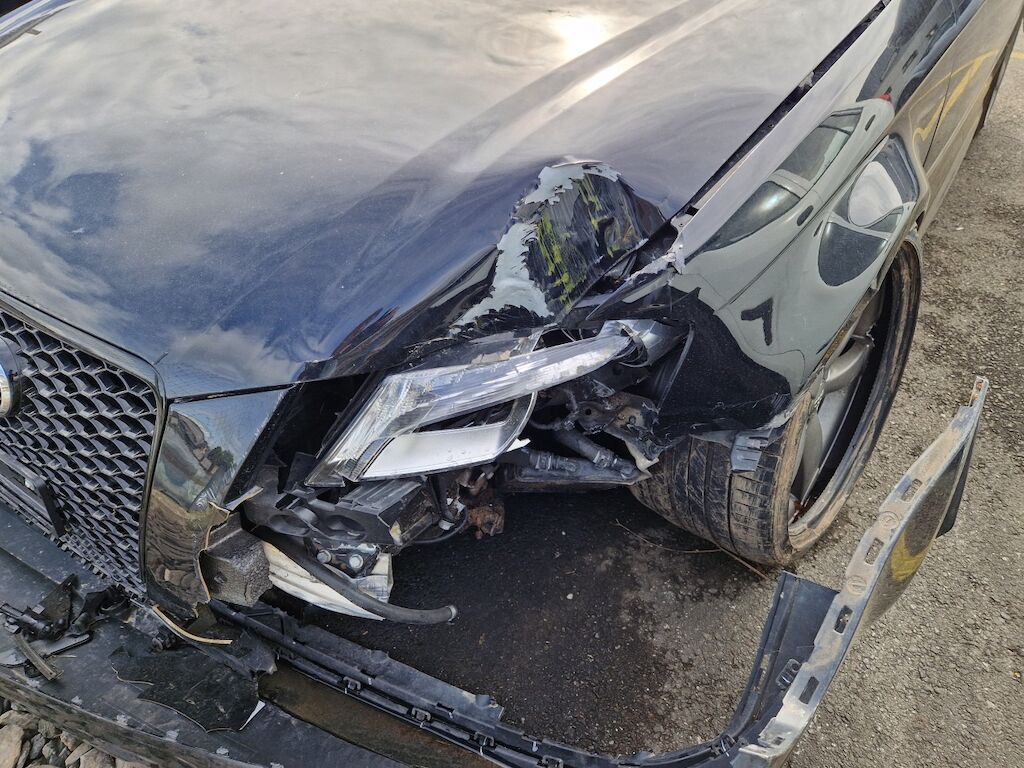 important choc: pare-choc avant, calandre, spoiler, phare gauche cassé, capot moteur enfoncé, aile avant gauche refoulée, mécanique avant gauche refoulée contre montant A , mécanique avant gauche à remplacer, direction à remplacer, joue d'aile gauche pliée, embout de longeron gauche plié, porte avant gauche marquée, aile avant droite pliée, jante et pneu avant droite endommagé, mécanique arrière gauche pliée, jante arrière droite pliée, pare-choc arrière arraché, air bag / passager activés, pare brise cassé, voir détail calcul dans le dossier Motor Getriebe Vorderachse Hinterachse Airbags ausgelöst: 4 Ja ( Abfallcode 16.01.04ak )