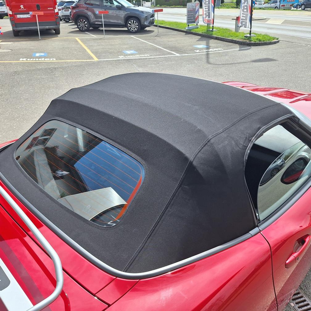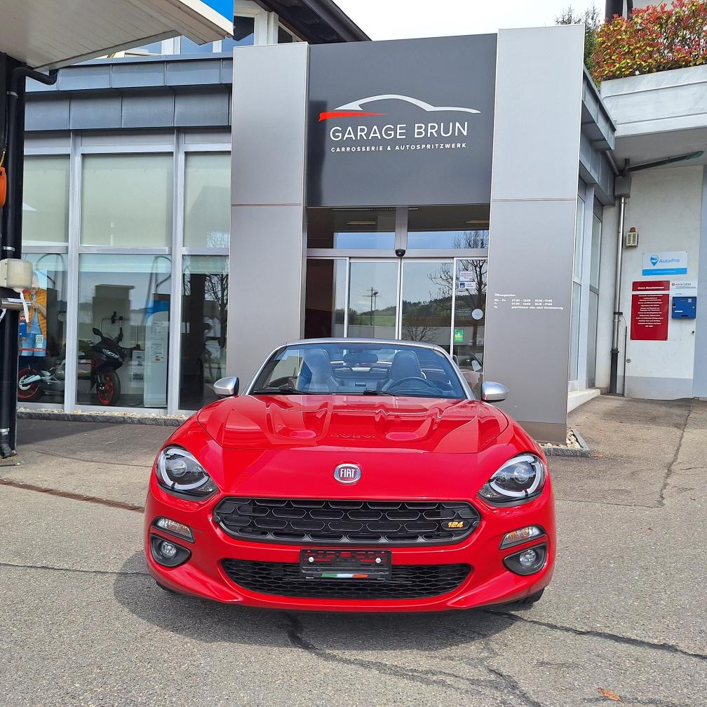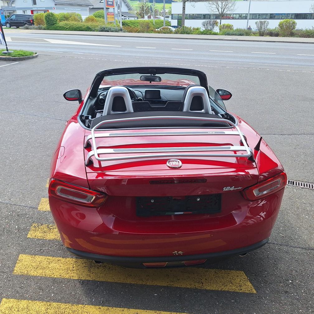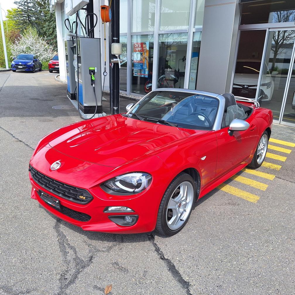 Fiat 124 Spider Europa Limited Edition, Nummer 2 von insgesamt 12 Fahrzeugen in der Schweiz (Serie Anniversary Edition limitiert auf 124 Fahrzeuge weltweit). Das Fahrzeug befindet sich in Topzustand. Interieur: Leder schwarz. Inklusive Mopar-Heckträger und neuem Kofferset (siehe Beispiel-Foto). Nur Sommerbetrieb und sehr gepflegt. Der Fiat Spider erhielt beim Kauf vor einem Jahr einen umfassenden Service inkl. Wechsel Zahnriemen und neue Batterie. Er wurde seitdem nur 4’500 km gefahren. Der Spider ist jetzt frisch ab kleinem Service (Ölwechsel und Wechsel Ölfilter sowie allgemeine Kontrolle). Neue MFK auf Wunsch nach Vereinbarung. Beschreibung / Auszug aus der Pressemitteilung von Stellantis Schweiz: Das Fahrzeug ist eine Hommage an den klassischen Fiat 124 Spider, der vor genau 50 Jahren auf dem Turiner Automobilsalon 1966 präsentiert wurde. Aus Anlass des Marktstarts in der Heimat wurde eine auf exakt 124 Exemplare limitierte Sonderserie des neuen 124 Spider produziert. Die Sonderversion Fiat 124 Spider Anniversary ist an der markanten Karosseriefarbe Passione Rot zu erkennen. Das exklusive Sondermodell Fiat 124 Spider Anniversary basiert auf der Version Lusso, kennzeichnend ist darüber hinaus ein Ausstattungspaket mit adaptiven Hauptscheinwerfern in LED-Technologie sowie Licht- und Regensensor (Visibility Pack). Für aussergewöhnliches Musikvergnügen sorgt eine Audioanlage mit insgesamt neun Lautsprechern - davon vier integriert in die Kopfstützen (Bose Pack). Vervollständigt wird die Ausstattung des Sondermodells durch da schlüssellose Zugangssystem "Keyless Entry", Rückfahrkamera und Navigationssystem mit 3D-Darstellung (Premium Pack). Jedes Exemplar der Sonderserie Fiat 124 Spider Anniversary ist mit einer Seriennummer-Plakette sowie einem speziellen Fiat 124 Spider Logo im Kühlergrill versehen. Gewährleistung oder Garantie, Nachverhandlung und Rücknahme der Ware sind ausgeschlossen.