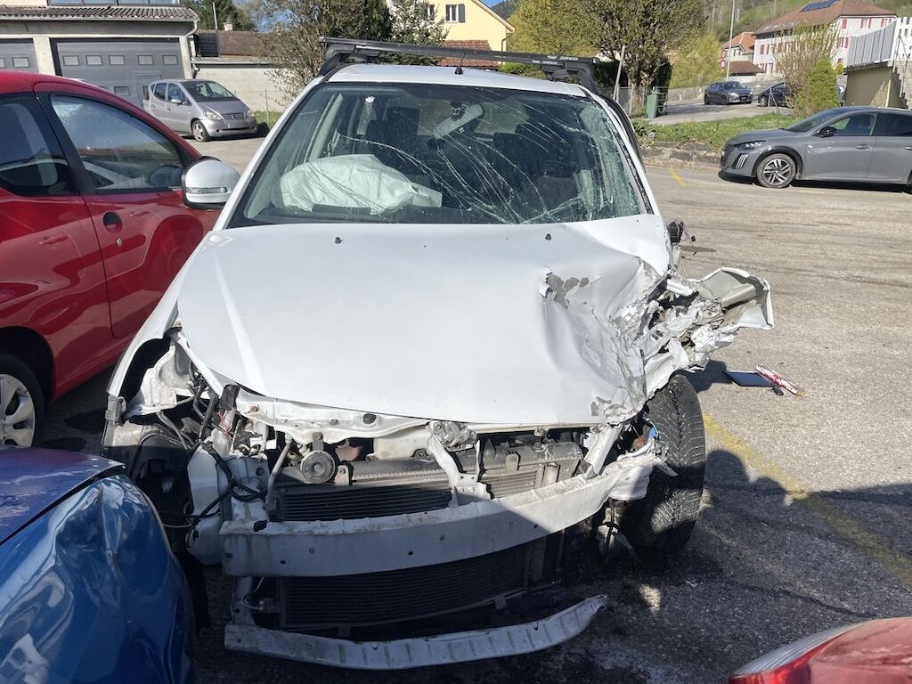 Pare-chocs, capot, phares, tôle frontale, aile avant gauche, train avant gauche, pare-brise, toit, porte avant gauche, rétroviseur gauche, joue d'aile gauche, tablier avant et montant G endommagés. Divers autres éléments de carrosserie sont légèrement endommagés. Deux airbags et deux ceintures déclenchés. Moteur et boite de vitesse pas testé. (véhicule ne démarre pas cause inconnue) /!\ Les barres de toit seront démontées /!\ /!\ Pas de double de clé /!\ /!\ Pas de manuel d’utilisateur, pas de carnet d’entretien /!\ Motor Getriebe Vorderachse Hinterachse Airbags ausgelöst: 2 unbekannt ( Abfallcode 16.01.04ak )