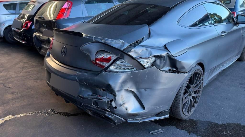 Auspuffanlage, Auspufftopf, C-Säule, Diverse Anbauteile, Heck, Heck links, Heck rechts, Heckblech, Heckdeckel, Kofferraumboden, Längsträger hinten links, Längsträger hinten rechts, Rad hinten links, Rad hinten rechts, Rad vorne links, Rad vorne rechts, Rücklicht links, Rücklicht rechts, Seite links, Seite rechts, Seitenwand links, Seitenwand rechts, Stossstange hinten