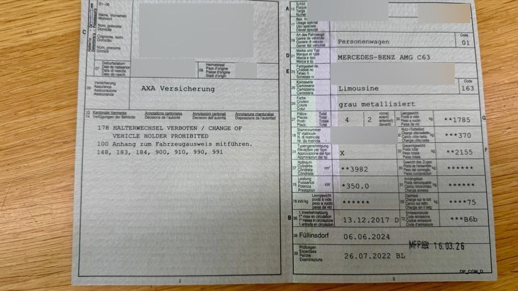 ADAPTIVE BRAKE mit Berganfahrhilfe, AMG Abrisskante, AMG Einstiegleisten beleuchtet, AMG Kombiinstrument, AMG Kühlergrill, AMG Motorhaube, AMG Sport-Abgasanlage mit zwei verchromten Endrohrblenden, AMG Sportpedalanlage, Airbag: Airbag Beifahrer deaktivierbar, Airbag: Airbag Fahrer und Beifahrer, Airbag: Knie-Airbag für Fahrer, Airbag: Seiten- und Beckenairbag (Pelvisbag) für Fahrer und Beifahrer, Airbag: Window-Kopfairbags für Fahrer, Beifahrer und Fondraumpassagiere, Antiblockiersystem (ABS), Antriebsschlupfregelung (ASR), Assist: ATTENTION ASSIST (Aufmerksamkeitsassistent), Assist: Fussgängerschutz, Assist: Notrufsystem, Assist: Tempomat mit variabler Geschwindigkeitsbegrenzung SPEEDTRONIC, Assist:Reifendruck-Kontrollanzeige, Aussenspiegel rechts und links beheizbar und elektrisch verstellbar, Beleuchtetes und abschliessbares Handschuhfach, Blinker in Aussenspiegel, Bottleholder, Bremsassistent (BAS), Dekor: Dachhimmel schwarz, Dekor: Instrumententafel in Ledernachbildung ARTICO, Dekor:Zierelemente in Klavierlack-Optik schwarz / Aluminium, Doppelcupholder vorne, Drittes Bremslicht LED, ECO Start-Stopp-Funktion, Einstiegsschienen vorne mit Logo, Elektrische Fensterheber vorne mit Komfortbetätigung und Einklemmschutz, Elektronisches Stabilitäts-Programm (ESP), Fahrwerk:AMG Hochleistungs-Bremsanlage, Fahrwerk:AMG RIDE CONTROL Sportfahrwerk, Fahrwerk:AMG Sport-Parameterlenkung, Fahrwerk:MG Hinterachs-Sperrdifferenzial, Fenstereinfassung in poliertem Aluminium, Fondeinzelsitze, Getriebe: Sequentielles 7-Gang-Getriebe mit Automatikfunktion, Gurtstraffer mit Gurtkraftbegrenzer, Heckscheibenheizung, Katalysator geregelt, Kennzeichenbeleuchtung in LED, Klima: Klimatisierungsautomatik THERMATIC mit 2-Klimazonen, Kofferaumnetz, Kofferraumfernentriegelung, Kommunikationsmodul, Kraftstofftank 66 Liter, Lackierung: Uni-Lackierung, Lenkrad längs- und höhenverstellbar, Lenkrad:AMG Performance Lenkrad in Leder Nappa, Licht: Fahrlichtassistent (automatisches Fahrlicht), Licht: Innenraumlicht-Paket, Licht: LED Heckleuchten, Licht: LED High Performance-Scheinwerfer, Licht: LED-Tagfahrlicht, Licht: Nebelschlussleuchte, Licht:Adaptives Bremslicht, Lichtwarnsummer, Media:Audio 20 USB Mulimediasystem mit Farbdisplay, Media:Bluetooth Freisprecheinrichtung, Mittelkonsole mit Ablagefach, Polster:Polsterung Ledernachbildung ARTICO / Microfaser DINAMICA, Regensensor für Scheibenwischer vorne, Reiserechner, Räder:AMG Leichtmetallräder im 10-Speichen- Design 18J, Scheibenwischer vorne mit Intervall, Sitze: Armlehne vorne mit Ablagefach, Sitze: ISOFIX Kindersitzvorrichtung, Sitze: Rücksitzlehne geteilt abklappbar, Sitze:AMG Sportsitze, Sitze:Vordersitze elektrisch verstellbar, Teppichfussmatten mit Logo, Verbandskasten, Wegfahrsperre elektronisch, Wärmeschutzverglasung, Zentralverriegelung mit Fernbedienung