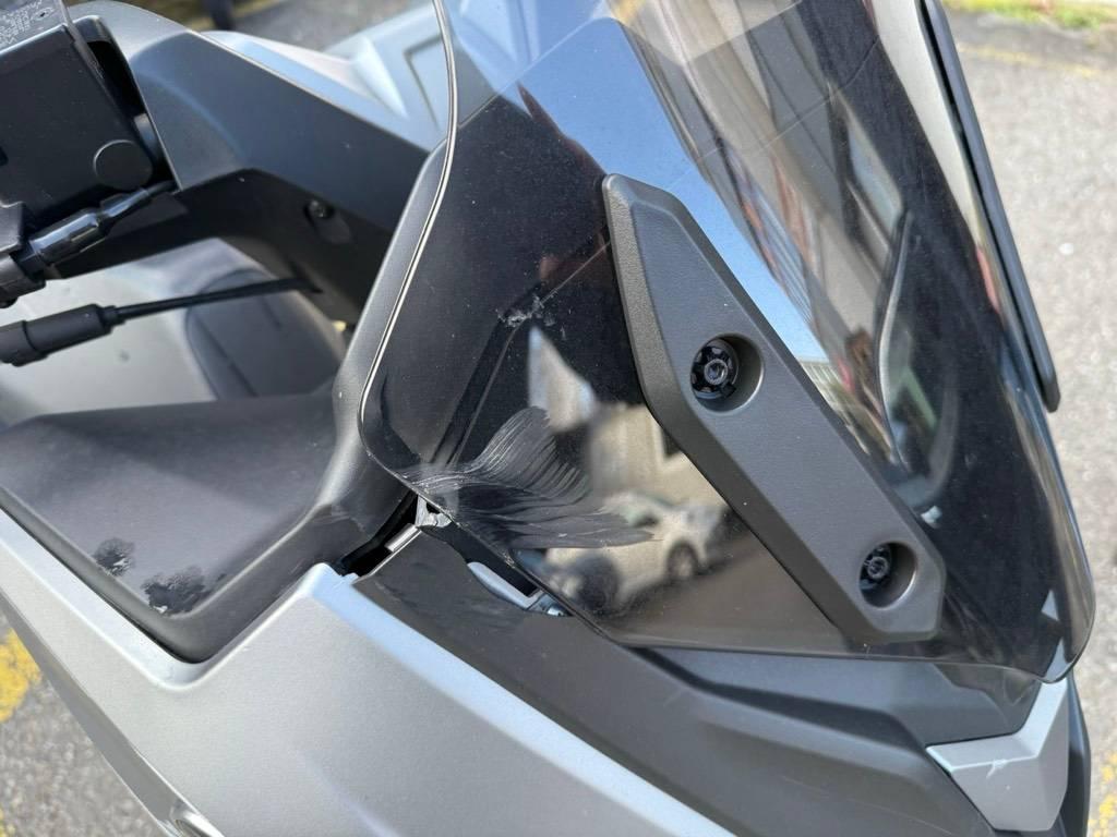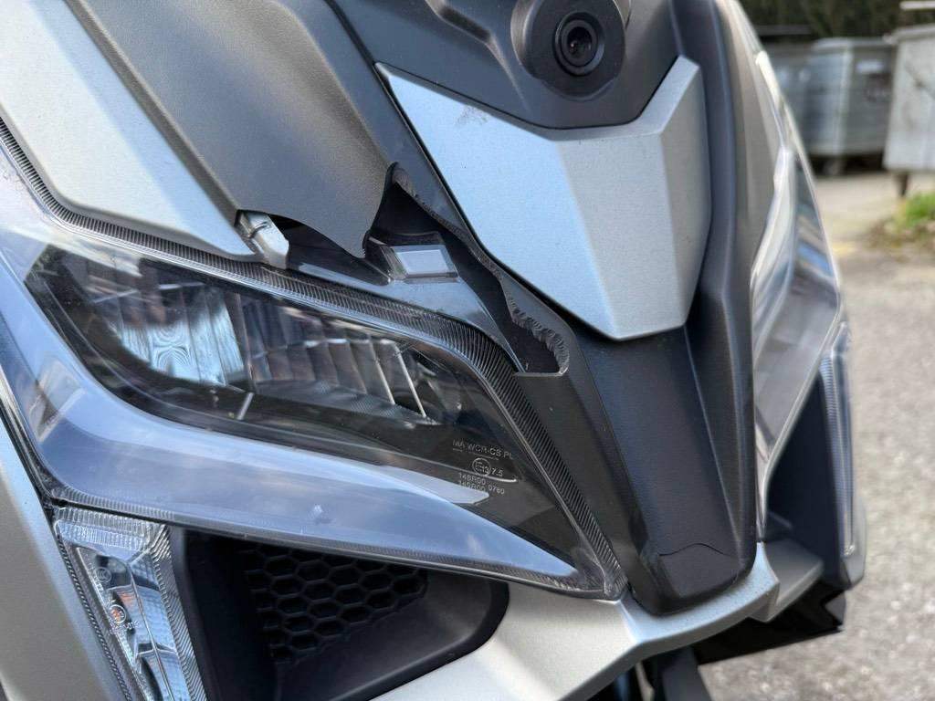 Auspufftopf, Front, Gabelholm, Lenker, Rahmen, Scheinwerfer, Schutzblech vorne, Seite rechts, Verschalungen rechts, Verschalungen vorne
