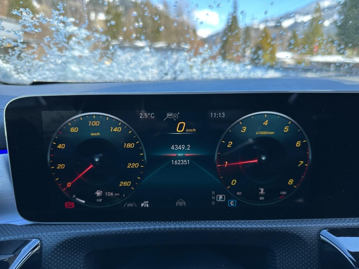AMG Leichtmetallräder im 5-Doppelspei- chen Design 18J, AMG Veloursfussmatten, Ablagen in den Türen, Airbag: Airbag Fahrer und Beifahrer, Airbag: Automatische Beifahrerairbag-Abschaltung, Airbag: Knie-Airbag für Fahrer, Airbag: Seiten- und Beckenairbag (Pelvisbag) für Fahrer und Beifahrer, Airbag: Window-Kopfairbags, Allradantrieb permanent, Antiblockiersystem (ABS), Antriebsschlupfregelung (ASR), Assist: ATTENTION ASSIST (Aufmerksamkeitsassistent), Assist: Notrufsystem, Assist: Transparente Motorhaube, Assist:ADAPTIVE BRAKE mit HOLD-Funktion und Berganfahrhilfe, Assist:COLLISION PREVENTION ASSIST (Kollisionswarnung), Assist:Reifendruck-Kontrollanzeige, Aussenspiegel rechts und links beheizt und elektrisch verstellbar, asphärisch gewölbtes Spiegelglas, Aussentemperaturanzeige, Bremsbelagverschleiss, Dekor: Dachhimmel schwarz, Dekor:Türmittelfelder in Ledernachbildung ARTICO, Diamantgrill, Doppelcupholder vorne, Drittes Bremslicht LED, EASY-PACK-Heckklappe mit elektrischer Betätigung zum Öffnen und Schliessen, ECO Start-Stopp-Funktion, Elektrische Fensterheber vorne + hinten, Elektronisches Stabilitäts-Programm (ESP), Fahrwerk:Komfortfahrwerk mit Tieferlegung, Fenstereinfassung in Chrom, Getriebe: Sequentielles 7-Gang-Getriebe mit Automatikfunktion, Gurtstraffer vorne und hinten, Höhenverstellbare Gurten vorne, KEYLESS GO Start Funktion, Katalysator geregelt, Klima:Klimatisierungsautomatik THERMOTRONIC, Komfortblinker, Kommunikationsmodul, Lackierung: Uni-Lackierung, Lenkrad längs- und höhenverstellbar, Lenkrad:Multifunktions-Sportlenkrad in Leder Nappa, Licht: Fahrlichtassistent (automatisches Fahrlicht), Licht: LED Blinker im Aussenspiegel, Licht: LED Heckleuchten, Licht: LED High Performance-Scheinwerfer, Licht: Nebelschlussleuchte, Licht:Adaptives Bremslicht, Licht:Ambientebeleuchtung, Media: Digitaler Radioempfang (DAB/DAB+), Media:Vorrüstung für Fahrzeug Monitoring, Mittelarmlehne vorne, einteilig Ablagefach, Multifunktionsanzeige, Paket: AMG Styling-Paket, Paket: Licht- und Sichtpaket, Pollenfilter (Staubfilter), Polster:Polsterung Ledernachbildung ARTICO / Microfaser DINAMICA, Regensensor für Scheibenwischer vorne, Räder:Reifenreparatur-Set mit Kompressor, Scheibenwischer vorne mit Intervall, Servolenkung geschwindigkeitsabhängig, Sitzbelegungserkennung für Beifahrersitz, Sitze: Rücksitzlehne geteilt abklappbar, Sitze:Sportsitze vorne, Stossstangen in Wagenfarbe, Touchpad, Türgriffe aussen in Wagenfarbe, USB-Anschluss, Wartungsintervall-Anzeige, Zentralverriegelung mit Fernbedienung und automatischer Türverriegelung, Zierelemente Aluminium mit Längsschliff hell