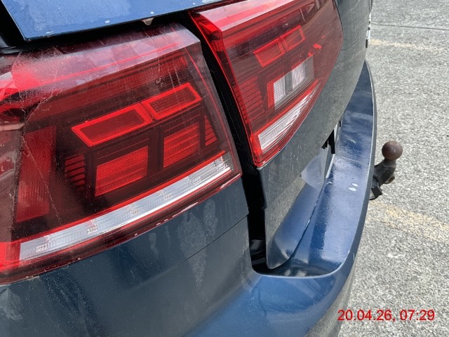 Beschreibung der Schäden: Heckdeckel, Stossfänger, Anhängerkupplung, Heckblech, Kofferboden, Risiko Holmen L+R bei Aufnahme der Anhängerkupplung deformiert. Dieses Fahrzeug hatte einen Anhänger zum Zeitpunkt der Kollision gezogen. Keine Airbags / Gurten ausgelöst.
