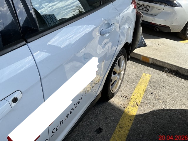 Beschreibung der Schäden: Seite li beschädigt, Türe vo, Türe hinten, Seitenwand hi, Stossfänger hi, Heckklappe Blende, Heckleuchten li+re, Rad HL, Risiko Aufhängung. Vorbestandene Schäden: Vorne mitte: Motorhaube einzelne Dellen. Mitte (Dach/Boden): Dach einzelne Dellen. Dem Alter entsprechende Dellen, Kratzer und Gebrauchsspuren. Handwerkerfahrzeug. Der Hundekäfig ist NICHT Teil der Auktion.