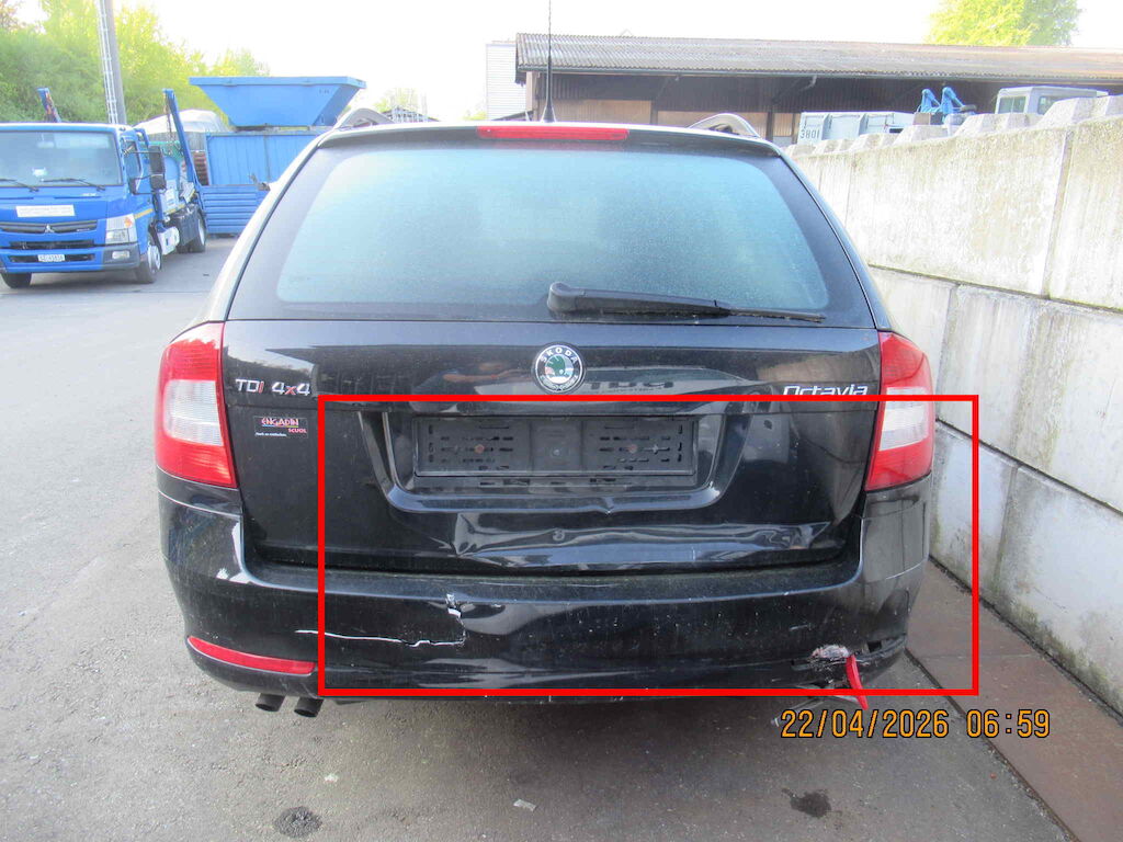 Frontschaden: Stossfänger, Scheinwerfer, Kotflügel, Motorhaube, Kühler und weitere Anbauteile vorne Heckschaden: Stossfänger, Heckklappe, Heckend, Seitenwand rechts und weitere Anbauteile hinten Motor Getriebe Vorderachse Hinterachse Airbags ausgelöst: 0 unbekannt ( Abfallcode 16.01.04ak )