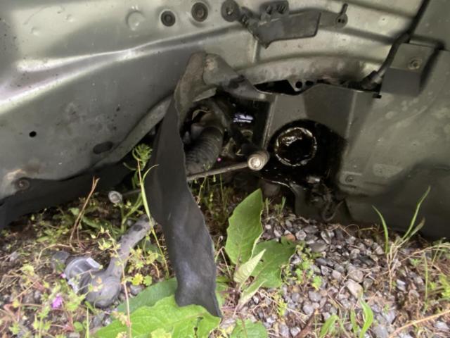 Aufhängungsteile vorne rechts beschädigt. Risiko Vorderachse. Lenkgetriebe ist beschädigt.