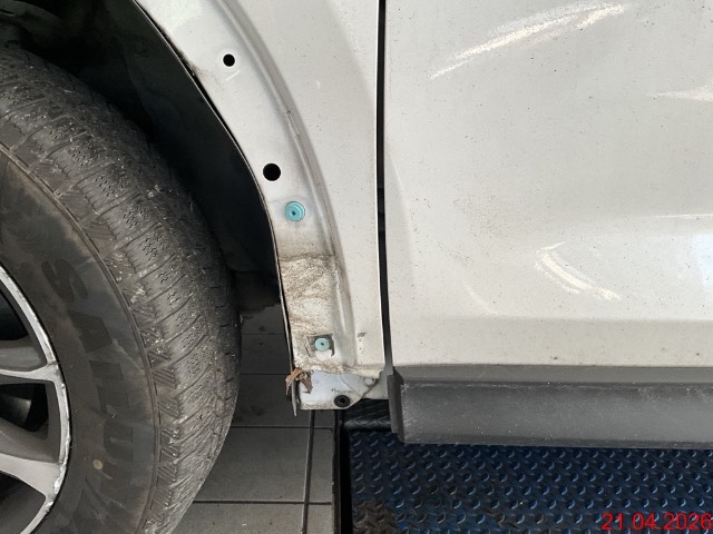 Seitenschaden vorne links. Stossfängerverkleidung, Motorhaube verschoben (Fanghaken steht schief), Kotflügel, Radlaufleiste, Scheinwerfer, Aufhängung deformiert, Felge beschädigt. Spaltmasse an der Front weichen ab, Risiko Längsträger. Fahrzeug wurde zur Schadenermittlung nicht zerlegt, Aufzählung NICHT abschliessend. / Vorbestandene Schäden: Seite links: Einstieg Fahrer div. Dellen und Kratzer. Dem Alter und der Laufleistung entsprechende Gebrauchsspuren und Kratzer. Hundefahrzeug.