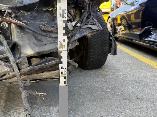 Anhängerkupplung deformiert, Stossfänger zerrissen, diverse Kabel durchtrennt hinten im Wasserkasten