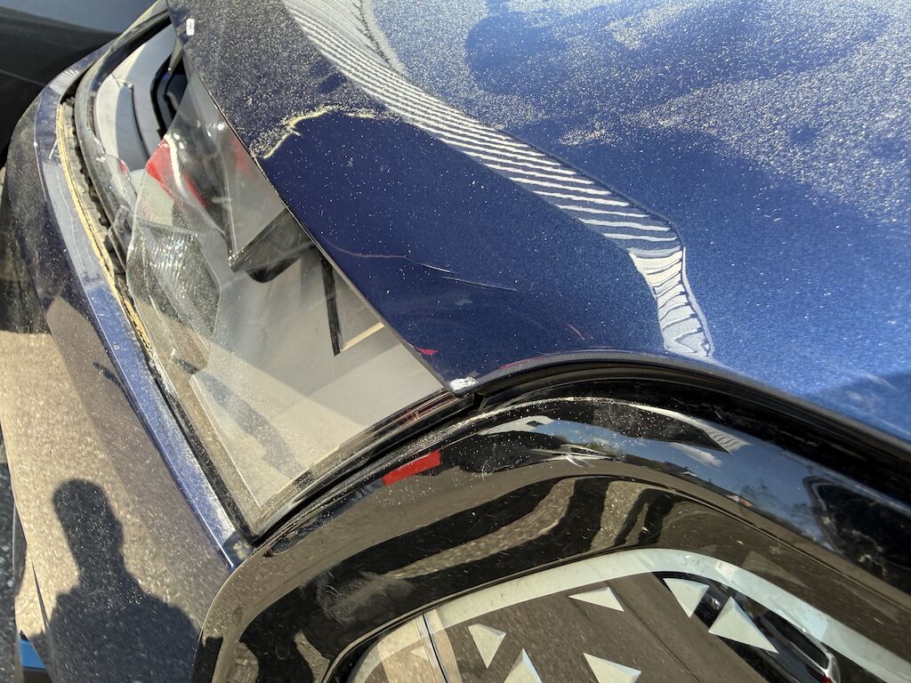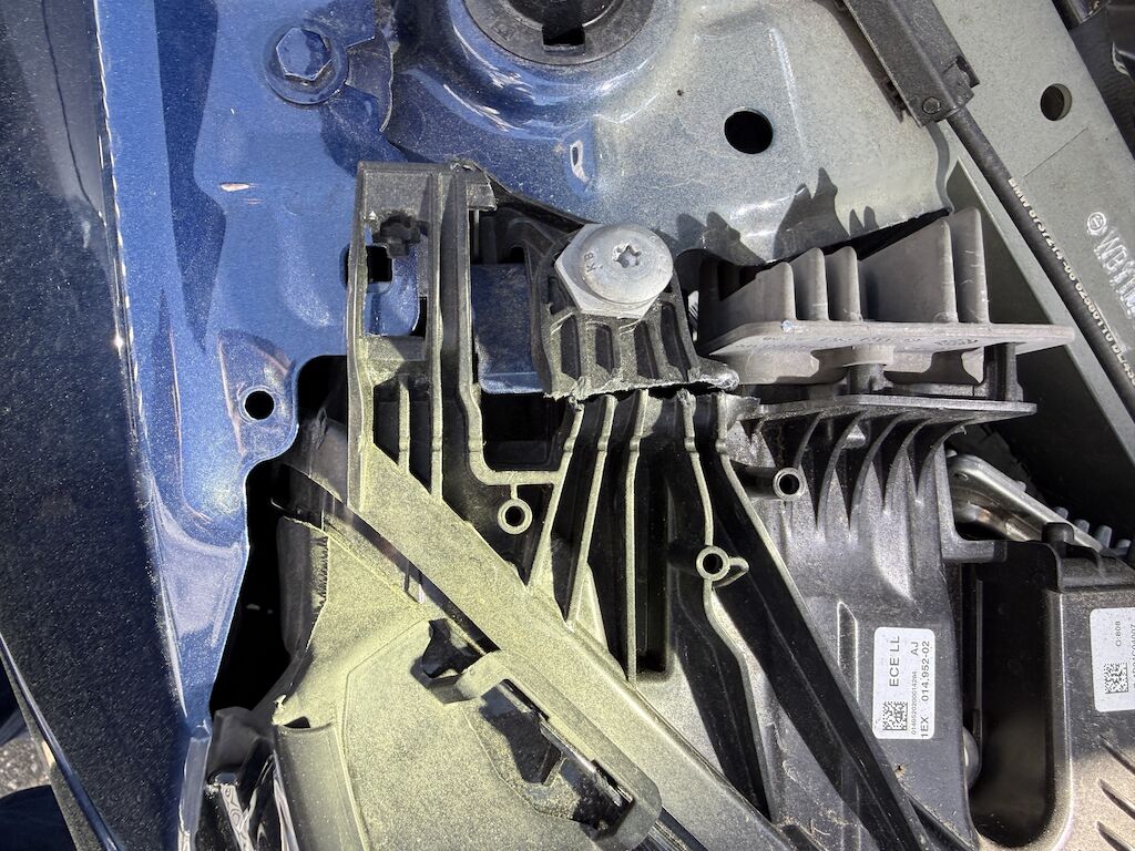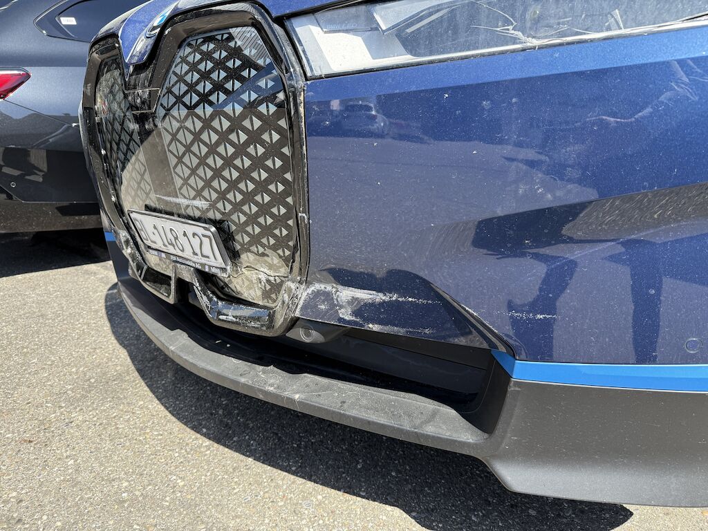 Anprall Front Dabei wurden Stossstange vorne, Spoiler, Kühlergrill, Radar, Frontkamera, Motorhaube, beide Scheinwerfer, Querträger, Frontmodul sowie die Felge und der Reifen vorne rechts beschädigt. Front- und Kopfairbags sowie Gurtstraffer wurden ausgelöst (Armaturenbrett defekt). Die Sicherheitsabschaltung in der Hochvoltbatterie wurde ebenfalls ausgelöst. Motor Getriebe Vorderachse Hinterachse Airbags ausgelöst: 4 unbekannt ( Abfallcode 16.01.04ak )