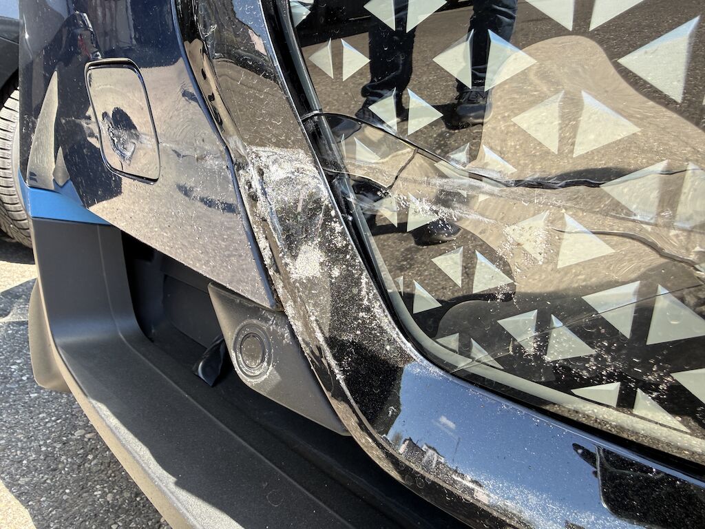 Diverse Karosserieteile sind zusätzlich leicht beschädigt.Fahrzeug ist nicht fahrbar, Hochvoltsystem ausgeschaltet!