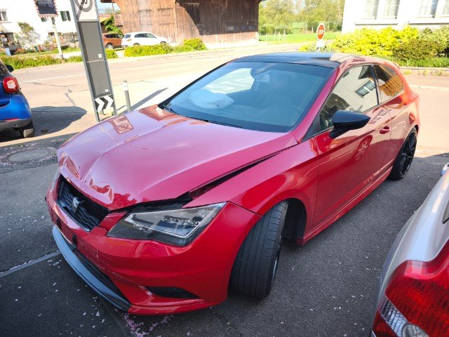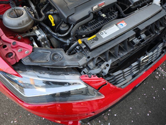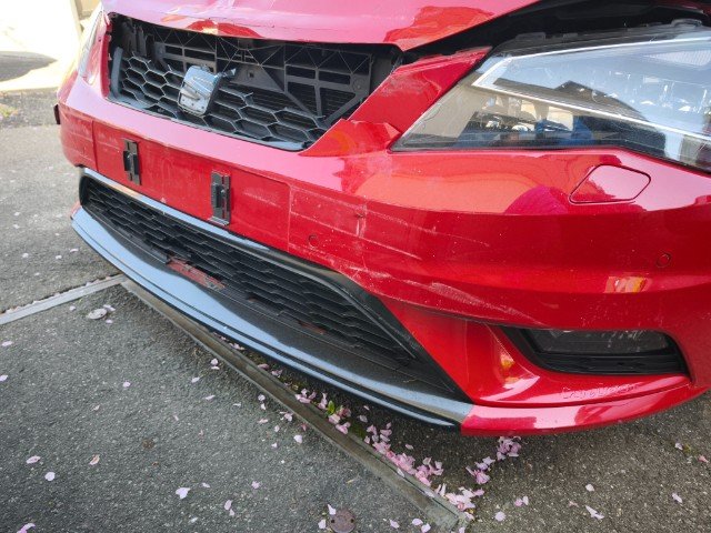 Die Front und alle Anbauteile der Front sind beschädigt worden. Motor läuft, aber unrund. Ursache unklar. Weiter beschädigt sind die A-Säule links und rechts. Zudem sind der Fahrer,- Knie, - und Beifahrerairbag sowie die Gurtstraffer vorne ausgelöst.