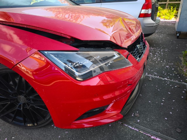 Front eingedrückt. Frontblech/Maskenblech eingedrückt.