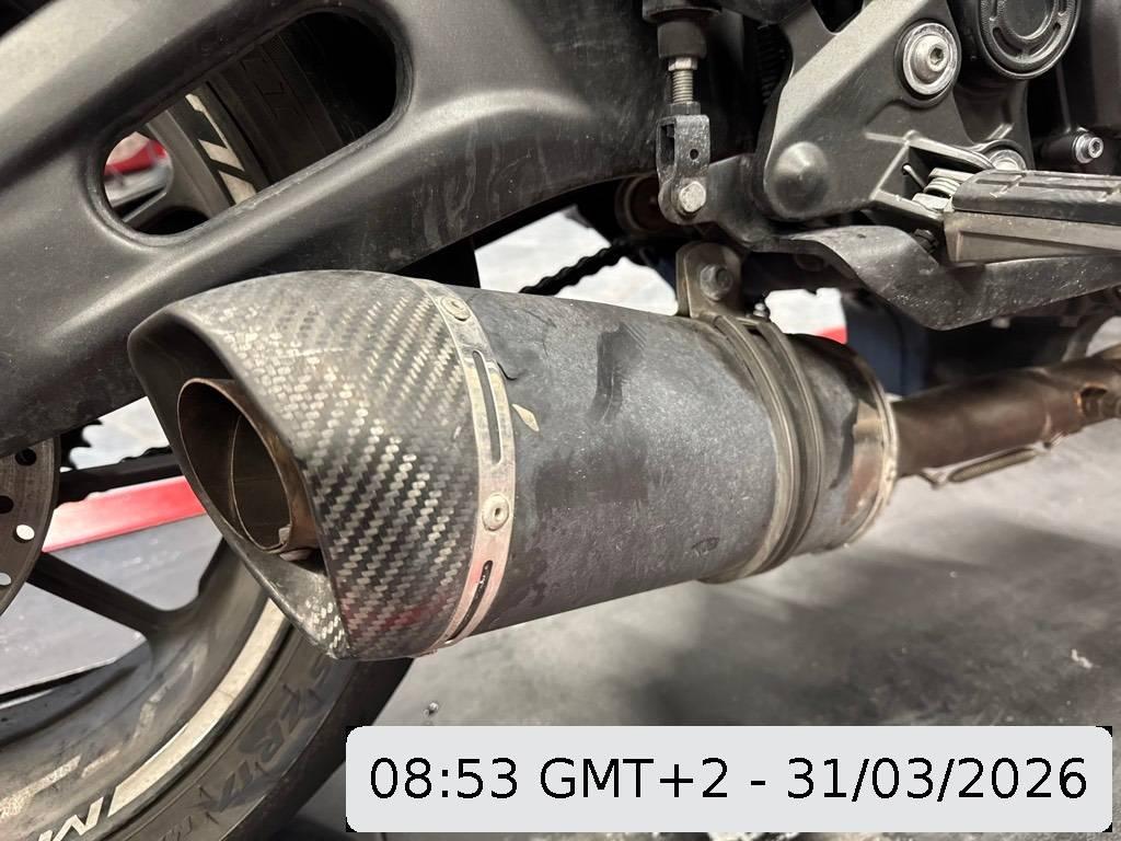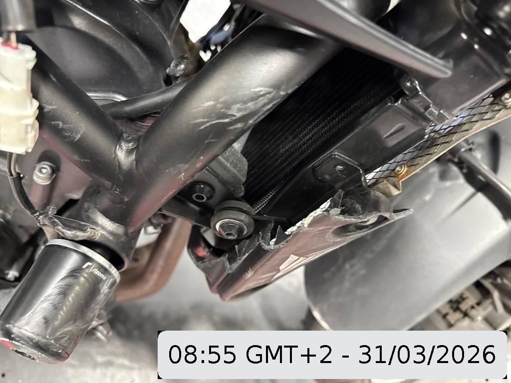 Auspufftopf, Diverse Anbauteile, Fussraster links, Fussraster rechts, Gabelholm, Heckverkleidung, Kupplungsgehäuse, Kühler, Lenkanschlag, Motorgehäuse, Rahmen, Verschalungen hinten, Verschalungen links, Verschalungen rechts, Verschalungen vorne