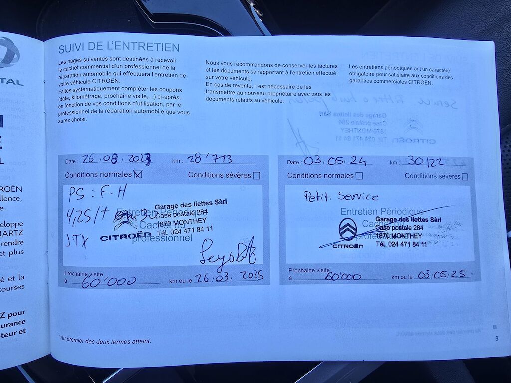 2 clésMap + carnet de service disponibleService prochain 05.2026Expertise dernier 06.05.2024Equipé en roues d'hiver pneus 5 mm+ 4 roues d'été pneus 6 mmFreins avant 60%Freins arriè 30 %Petits marques de rayures sur la carrosseriePas de contrôle technique (essai en aroute) effectué2 keysMOT certificate and service history availableNext service due 05/2026Last MFK 06.05.2024Fitted with winter tyres 5 mm+ 4 summer tyres 6 mmFront brakes 60%Rear brakes 30 %Minor scratches on the bodyworkNo workshop inspection (road test only) carried out
