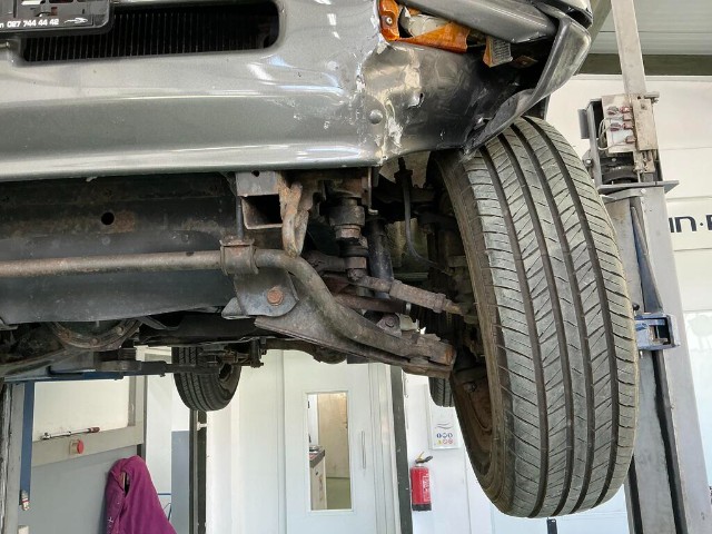 Vorderachse ist beschädigt. Risiko Lenkung.