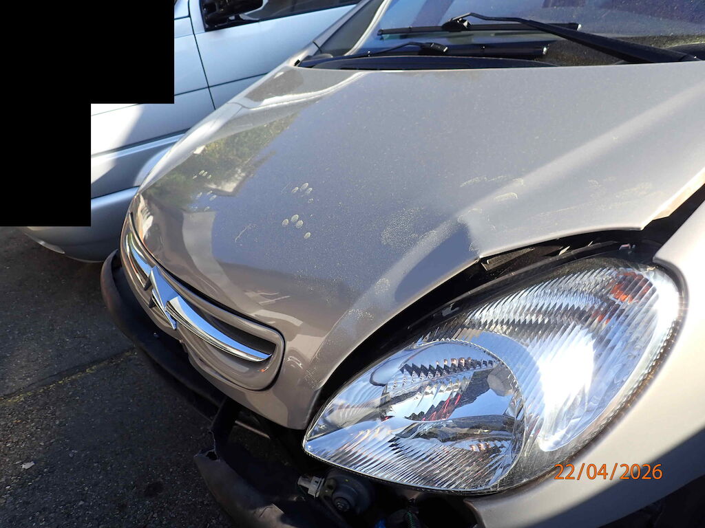 Motorhaube, Stossstange vo., Balken vo., Schlossträger vo., Scheinwerfer li., Kondensator, Kühler, Kühlergrill, Lüfter Motor Getriebe Vorderachse Hinterachse Airbags ausgelöst: 0 unbekannt ( Abfallcode 16.01.04ak )