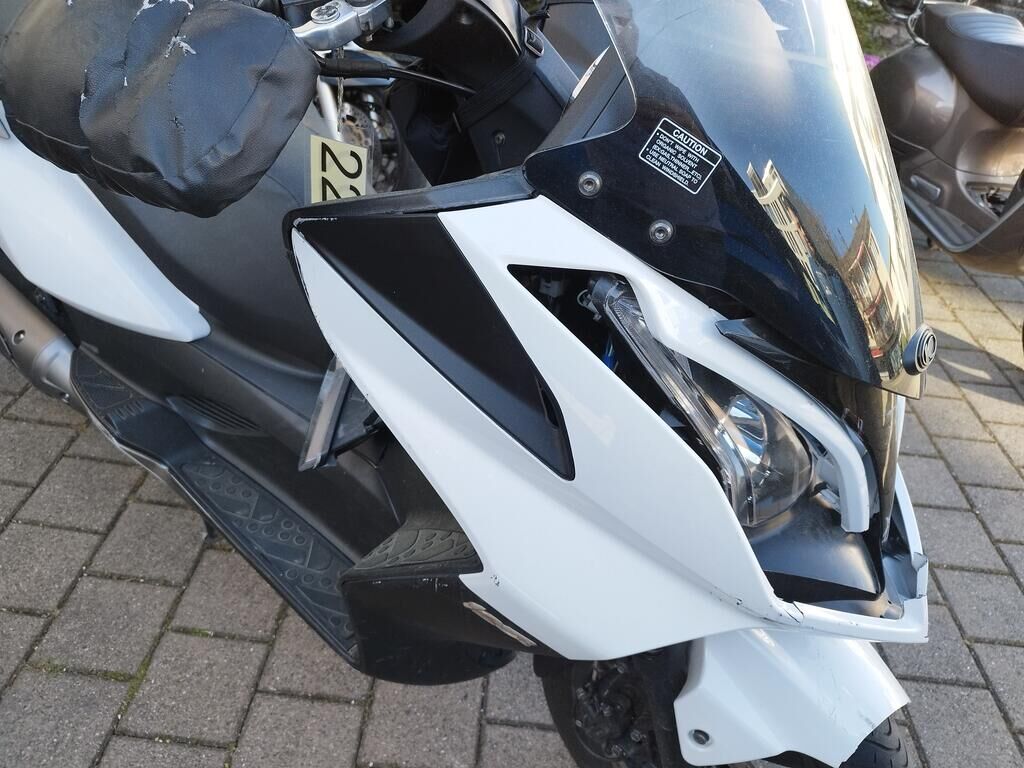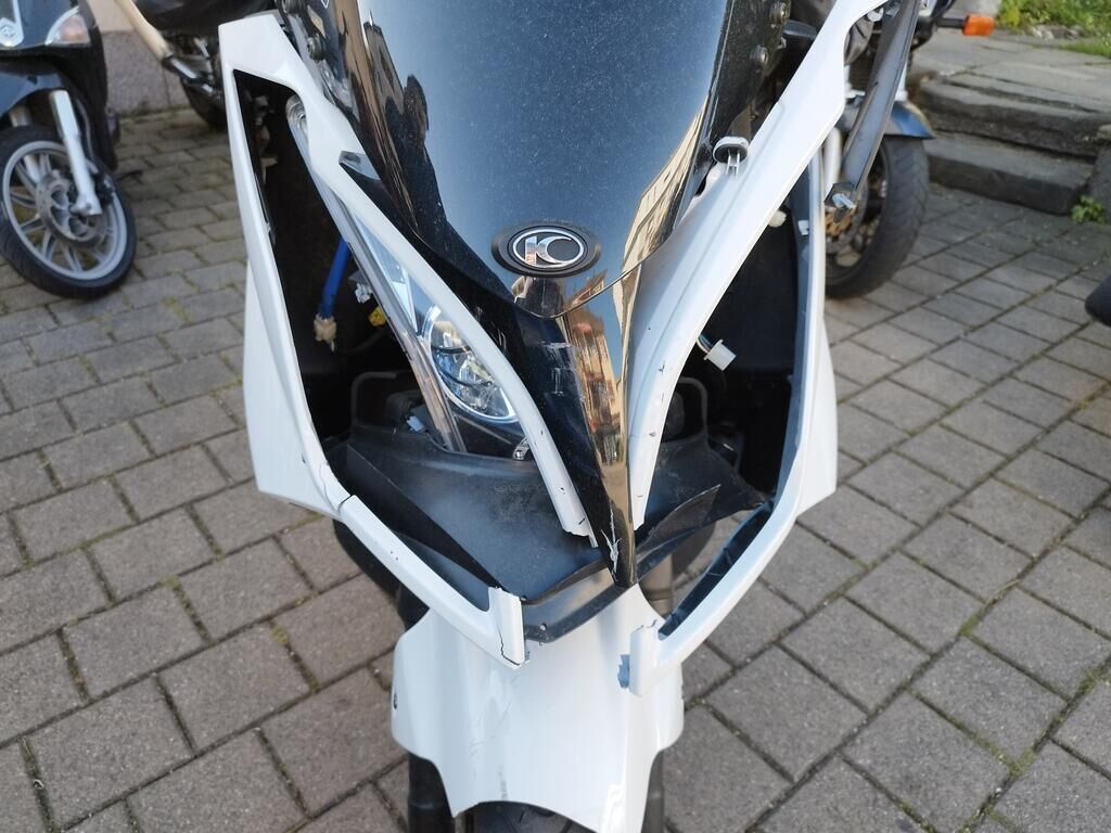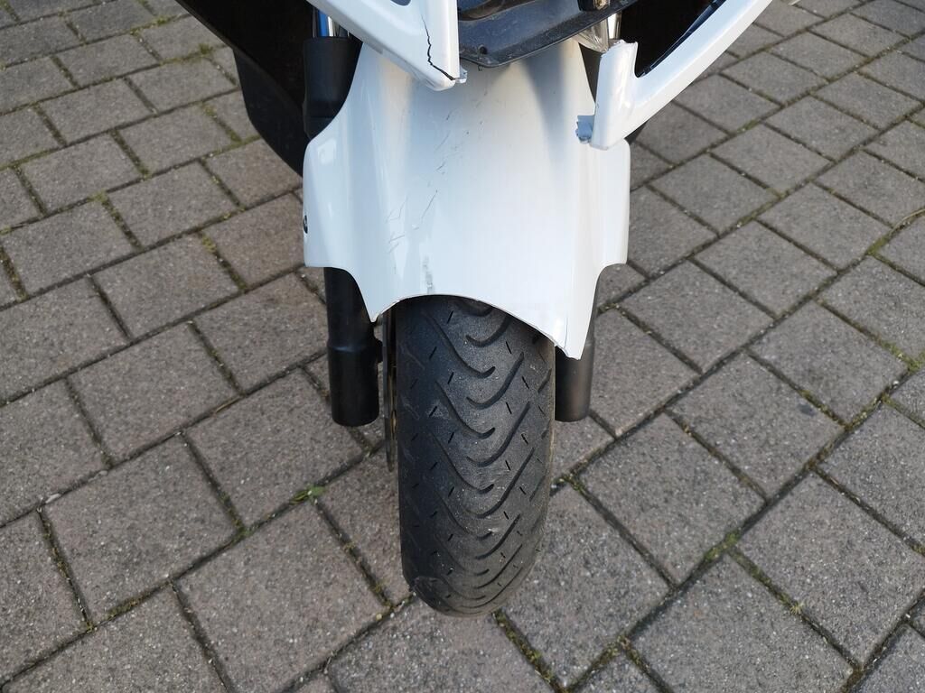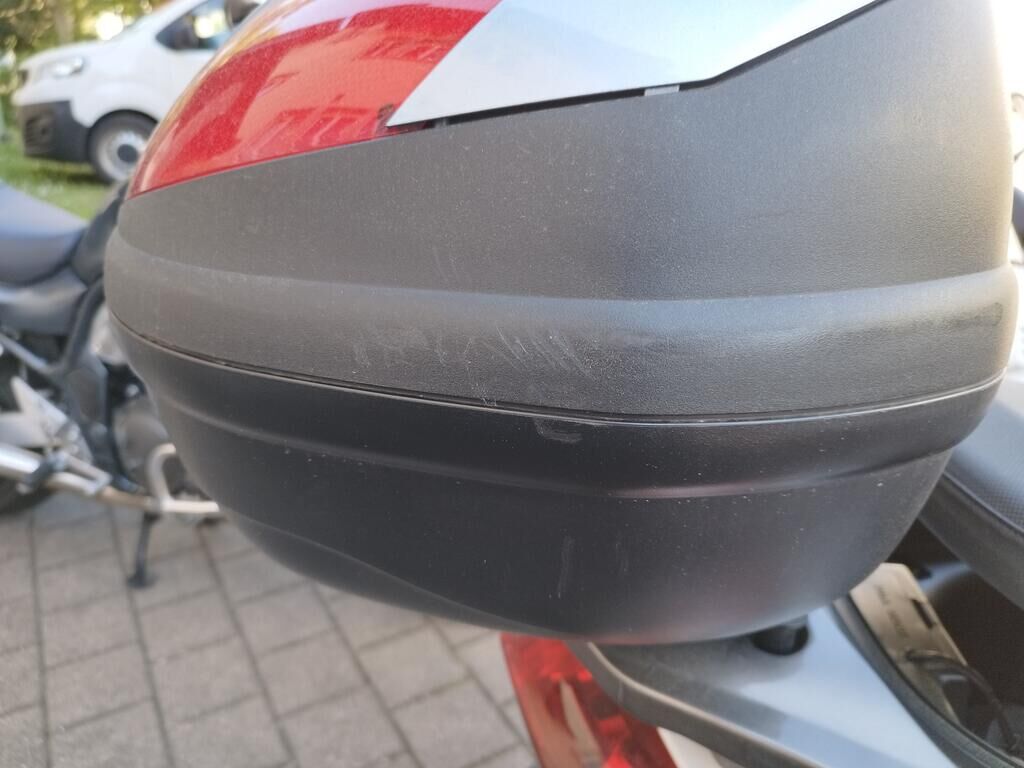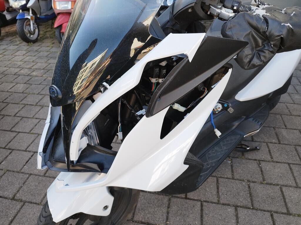 Das Rad vorne steht schräg, die Frontgabeln sind gestaucht, der Kotflügel vorne ist gerissen, alle Frontverkleidungen sind gerissen, beide Scheinwerfer sind gerissen, die Frontscheibe ist gerissen, die Verkleidung vorne rechts hat Kratzspuren, die Verkleidungen rechts haben Kratzspuren, der Griff rechts hat Kratzspuren, der Bremsgriff rechts hat Kratzspuren, der Spiegel rechts hat Kratzspuren, die Verkleidung hinten rechts hat Kratzspuren, die Auspuffverkleidung hat Kratzspuren, das Topcase hat Kratzspuren. Weitere Details zum Schadenfall gehen aus den beiliegenden Fotos hervor. Motor Getriebe Vorderachse Hinterachse Airbags ausgelöst: 0 unbekannt ( Abfallcode 16.01.04ak )