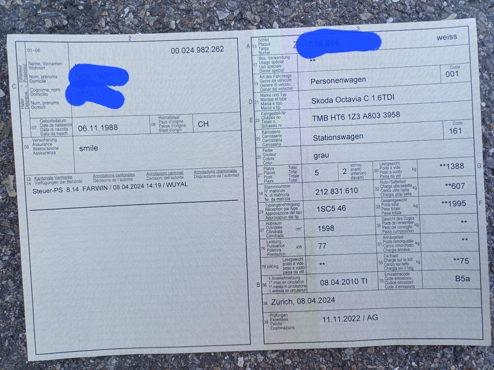 Airbaglampe leuchtet - Fehler Seitenairbag VR Motordiagnose- & Vorglühkontroll-Lampe leuchten - gemäss Fahrerin Sensor defekt. Carrosserieschäden -> siehe Fotos