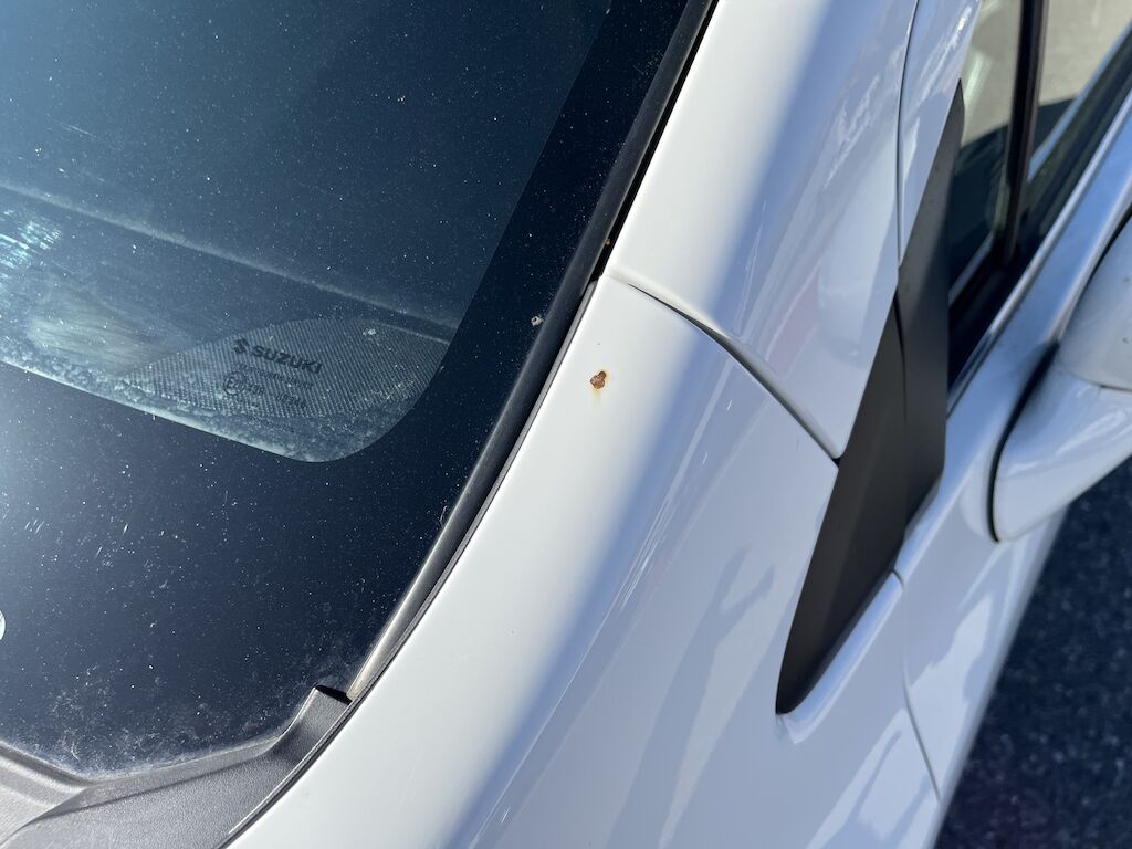 Die Kleberückstände können noch entfernt werden. Das Fahrzeug war als Firma beschriftet.