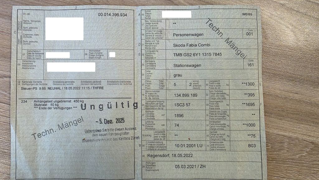 Technische und Karrosserie Mängel