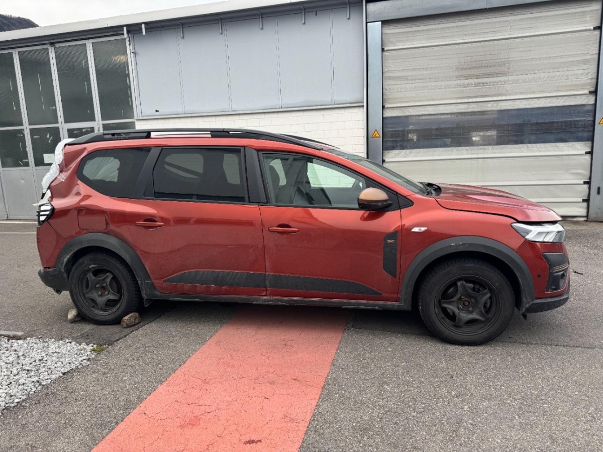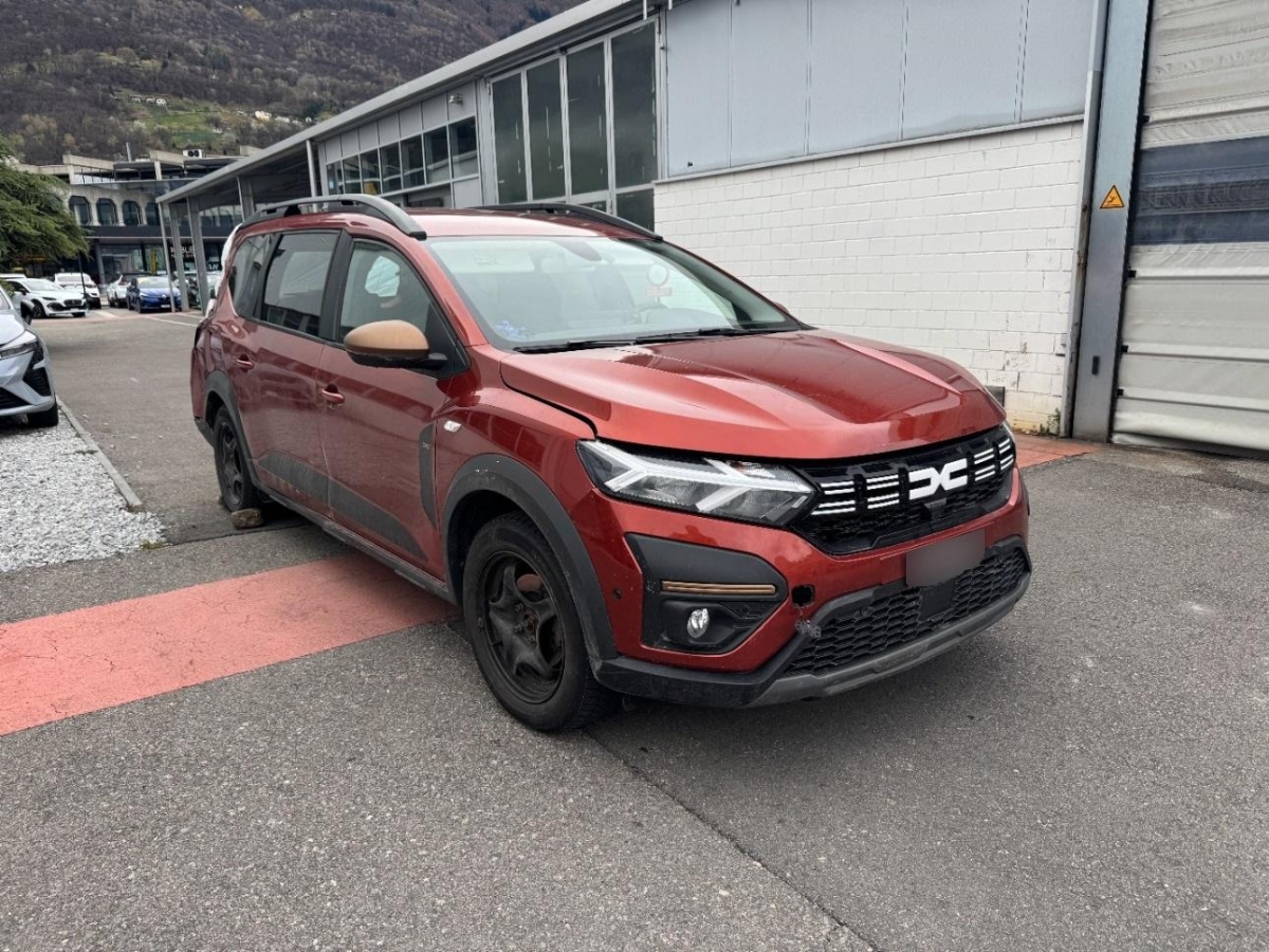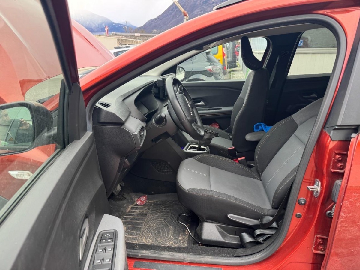 Wegfahrsperre elektronisch, Assist: Rückfahrkamera, Erhöhte Mittelkonsole mit Stauraum und Armlehne, Sitze: Kopfstützen vorne und hinten höhenverstellbar, Assist: Aktiver Notfall-Bremsassistent (AEBS), Airbag: Beifahrerairbag abschaltbar, Aussenspiegel elektrisch verstellbar und beheizbar, Notruf-Funktion (eCall), Klima: Klimaautomatik mit Pollenfilter, Innenleuchte vorne, Outdoor Design-Touch mit Stripping schwarz an den Seitentüren, Räder: Alufelgen Mahalia schwarz (16-Zoll) 205/60 R16, Getriebe: 6-Gang-Automatikgetriebe, Unterfahrschutz vorne und hinten im SUV-Look in Dunkelgrau, Schwarze Haifisch-Antenne, Airbag: Frontairbag für Fahrer und Beifahrer, Servolenkung elektrisch, Antiblockiersystem (ABS), Assist: Tempopilot, Türgriffe aussen in Wagenfarbe, Assist: Regensensor, Elastisches Band zur Fixierung von Gegenstände im Kofferraum, Assist: Geschwindigkeitsbegrenzer, Eco-Mode zur Reichweitenoptimierung, Lenkrad: Lenkrad in Lederoptik, Räder: Reifendruckkontrollsystem, Lenkrad: Lenkrad tiefenverstellbar, Licht: Nebelschlussleuchte, Sitze: Klapptisch an den Rückenlehnen der vorderen Sitze, Sitze: Fahrersitz höhenverstellbar, Sitze: ISOFIX-Kindersitzbefestigung auf den hinteren Aussenplätzen, Heckscheibenheizung, Assist: Elektrische Parkbremse, Start/Stop-Funktion, Licht: LED-Abblendlicht und -Tagfahrlicht mit Lichtautomatik, Elektrische Fensterheber vorne und hinten und Impulsschaltung für den Fahrer, Licht: Nebelscheinwerfer, Assist: Einparkhilfe hinten akustisch, Dreipunkt-Sicherheitsgurte auf allen Plätzen, Sitze: Rücksitzbank und -lehne 2. Reihe asymmetrisch umklappbar (1/3 zu 2/3), Licht: Halogen-Fernlicht, Assist: ESP (Electronisches Stabilitätsprogramm) und Berganfahrhilfe, Getönte hintere Seitenfenster und Heckscheibe, Stoffeinsatz Armaturenbrett und vordere Türen, Mattchrom an Lenkrad, Schaltung und Türöffnern, Airbag: Seitenairbags vorne und Windowsbags für vorne und hinten, Sitze: Fahrersitz mit Armlehne, Digital Bordcomputer 7", Zentralverriegelung mit Funk-Fernbedienung und automatischer Türverriegelung, Elektrische Fensterheber vorne, modulare Dachreling in Schwarz, Garantie: Dacia-Garantie: 2 Jahre Lackgarantie (ab Erstzulassung), Garantie: Dacia-Garantie: 3 Jahre oder 100'000 km (ab Erstzulassung), Garantie: Dacia Garantie: 6 Jahre Garantie gegen Durchrostung (ab Erstzulassung), Handsfree-Keycard, Beleuchtung: Drittes Bremslicht, Multimedia: Media Display-Multimediasystem – DAB+-, FM- und AM-Radio, – zusätzliche Audioquelle über USB oder Bluetooth, – Bluetooth-Freisprecheinrichtung, – Lenkradbedienelemente, – Smartphone-Halterung, – USB-Anschluss neben der Smartphone-Halterung, - 8-Zoll-Touchscreen und Smartphone-Integration über Apple CarPlay oder Android Auto, - 4 Lautsprecher, Stoßfänger in Wagenfarbe, schwarze Außenspiegel, Route: Reifenreparaturset, Extreme-Ausstattung, Fußmatten vorne, hinten und im Kofferraum, Polsterung: Extreme-Sitzbezüge, Heckscheibenwischer mit Scheibenwaschanlage