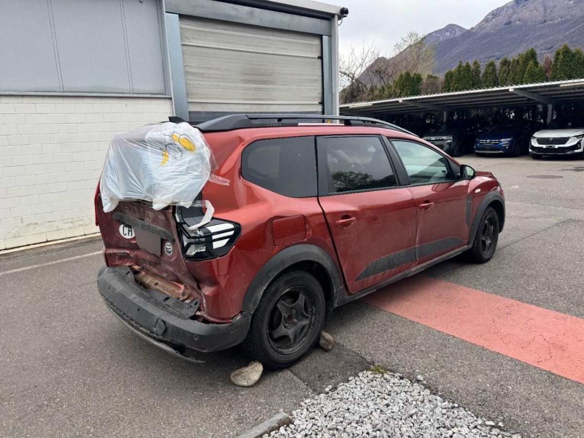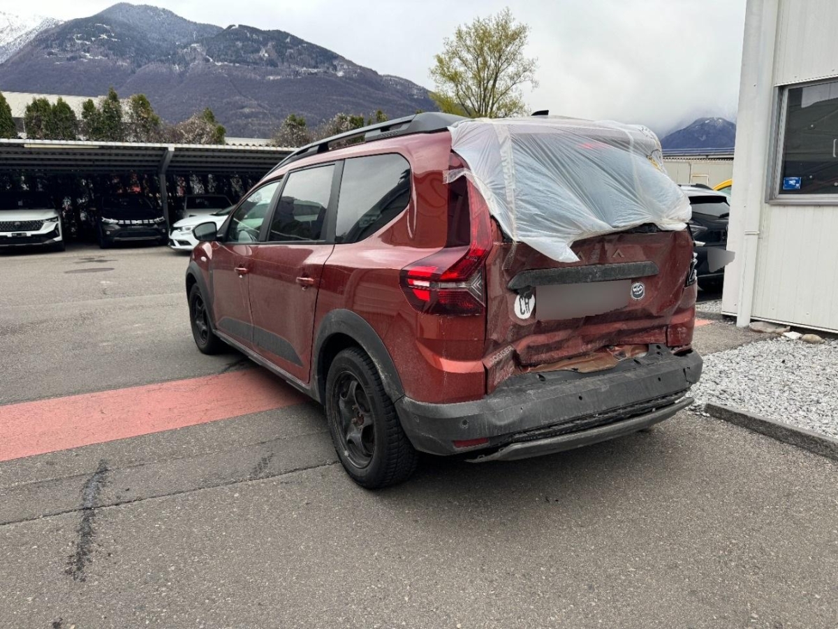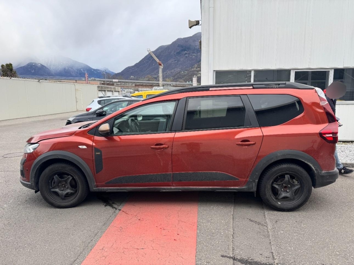Wegfahrsperre elektronisch, Assist: Rückfahrkamera, Erhöhte Mittelkonsole mit Stauraum und Armlehne, Sitze: Kopfstützen vorne und hinten höhenverstellbar, Assist: Aktiver Notfall-Bremsassistent (AEBS), Airbag: Beifahrerairbag abschaltbar, Aussenspiegel elektrisch verstellbar und beheizbar, Notruf-Funktion (eCall), Klima: Klimaautomatik mit Pollenfilter, Innenleuchte vorne, Outdoor Design-Touch mit Stripping schwarz an den Seitentüren, Räder: Alufelgen Mahalia schwarz (16-Zoll) 205/60 R16, Getriebe: 6-Gang-Automatikgetriebe, Unterfahrschutz vorne und hinten im SUV-Look in Dunkelgrau, Schwarze Haifisch-Antenne, Airbag: Frontairbag für Fahrer und Beifahrer, Servolenkung elektrisch, Antiblockiersystem (ABS), Assist: Tempopilot, Türgriffe aussen in Wagenfarbe, Assist: Regensensor, Elastisches Band zur Fixierung von Gegenstände im Kofferraum, Assist: Geschwindigkeitsbegrenzer, Eco-Mode zur Reichweitenoptimierung, Lenkrad: Lenkrad in Lederoptik, Räder: Reifendruckkontrollsystem, Lenkrad: Lenkrad tiefenverstellbar, Licht: Nebelschlussleuchte, Sitze: Klapptisch an den Rückenlehnen der vorderen Sitze, Sitze: Fahrersitz höhenverstellbar, Sitze: ISOFIX-Kindersitzbefestigung auf den hinteren Aussenplätzen, Heckscheibenheizung, Assist: Elektrische Parkbremse, Start/Stop-Funktion, Licht: LED-Abblendlicht und -Tagfahrlicht mit Lichtautomatik, Elektrische Fensterheber vorne und hinten und Impulsschaltung für den Fahrer, Licht: Nebelscheinwerfer, Assist: Einparkhilfe hinten akustisch, Dreipunkt-Sicherheitsgurte auf allen Plätzen, Sitze: Rücksitzbank und -lehne 2. Reihe asymmetrisch umklappbar (1/3 zu 2/3), Licht: Halogen-Fernlicht, Assist: ESP (Electronisches Stabilitätsprogramm) und Berganfahrhilfe, Getönte hintere Seitenfenster und Heckscheibe, Stoffeinsatz Armaturenbrett und vordere Türen, Mattchrom an Lenkrad, Schaltung und Türöffnern, Airbag: Seitenairbags vorne und Windowsbags für vorne und hinten, Sitze: Fahrersitz mit Armlehne, Digital Bordcomputer 7", Zentralverriegelung mit Funk-Fernbedienung und automatischer Türverriegelung, Elektrische Fensterheber vorne, modulare Dachreling in Schwarz, Garantie: Dacia-Garantie: 2 Jahre Lackgarantie (ab Erstzulassung), Garantie: Dacia-Garantie: 3 Jahre oder 100'000 km (ab Erstzulassung), Garantie: Dacia Garantie: 6 Jahre Garantie gegen Durchrostung (ab Erstzulassung), Handsfree-Keycard, Beleuchtung: Drittes Bremslicht, Multimedia: Media Display-Multimediasystem – DAB+-, FM- und AM-Radio, – zusätzliche Audioquelle über USB oder Bluetooth, – Bluetooth-Freisprecheinrichtung, – Lenkradbedienelemente, – Smartphone-Halterung, – USB-Anschluss neben der Smartphone-Halterung, - 8-Zoll-Touchscreen und Smartphone-Integration über Apple CarPlay oder Android Auto, - 4 Lautsprecher, Stoßfänger in Wagenfarbe, schwarze Außenspiegel, Route: Reifenreparaturset, Extreme-Ausstattung, Fußmatten vorne, hinten und im Kofferraum, Polsterung: Extreme-Sitzbezüge, Heckscheibenwischer mit Scheibenwaschanlage
