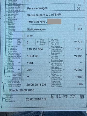 Airbag Fahrer und Beifahrerseite Sitzheizung vorne Scheinwerfer Waschanlage Sportfahrwerk Regensensor Mittelarmlehne hinten mit Durchladesystem Reifendruck-Kontrollsystem RDK Heckscheibenwischer Kopf und Seitenairbag vorne Park-Distanz-Sensor vorne + hinten Aussenspiegel elektrisch anklappbar (Memory) ESP/ ASR/ MSR/ ABS mit EBV Rückfahrkamera Seitenairbags hinten Netztrennwand Dachreling schwarz Vordersitze elektrisch verstellbar mit Memory Abfallbehälter Multifunktionsanzeige Maxi-DOT Knieairbag Fahrer SunSet (getönte Scheiben) Gepäckraumrollo Pack Sport Design Isofix Kindersitzverankerung für Rückbank Geschwindigkeitsregelanlage Soundsystem Adaptive Geschwindigkeitsregelung ACC Nebelscheinwerfer mit Corner Funktion Fernlichtassistent Parklenkassistent Ladeboden variabel Bi-Xenon Scheinwerfer mit AFS und Waschanlage LED Rückleuchten Keyless-Access Spurhalteassistent LDW Klimaanlage Climatronic 3-Zonen Sportsitze - Alcantara Multifunktions-Sportlenkrad Navigationssystem Columbus inkl. Festplatte Keine Gewähr auf die Angaben der Serienausstattungen Garantieverlängerung für das 3.und 4. Jahr/ 120'000 km LED Innenraumbeleuchtung Proaktives Insassenschutzsystem Rücksitzlehne mit Fernentriegelung Fahrprofilauswahl Toter-Winkel-Assistent Digitaler Radioempfang DAB+ Front Assist (Umfeldüberwachungssystem) Heckklappe elektrisch mit Freihandfunktion Progressiv Lenkung Verkehrsschild-Erkennungssystem SmartLink Leichtmetallfelgen 19" Vega Spurhalteassistent und Totwinkelassistent Müdigkeitserkennung