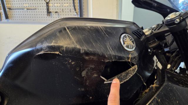 Schutzblech vorne defekt. Gabel Risiko. Lenker verbogen.