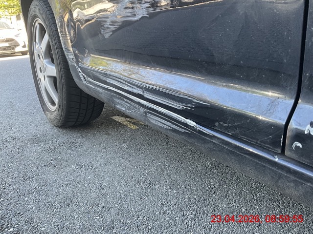 Beschreibung der Schäden: Seitentür vorne und hinten rechts, Seitenwand rechts, Schwelle rechts, Felge hinten rechts deformiert. Vorbestandene Schäden: Vorne rechts: Rost an Kotflügel rechts.