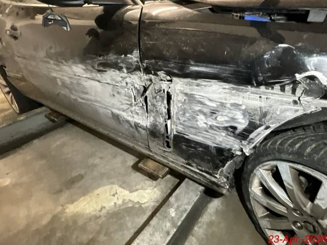 Beschreibung der Schäden: Der Kotflügel links und rechts, die Radaufhängung links und rechts, das Radhaus rechts, die Motorhaube, die Felgen vorne, die Seitentüre rechts, die Seitenwand sind deformiert. Die Stossstange vorne und hinten, die Scheinwerfer, die Kühlergitter sind gerissen.