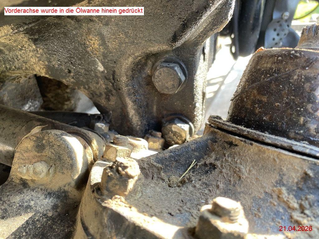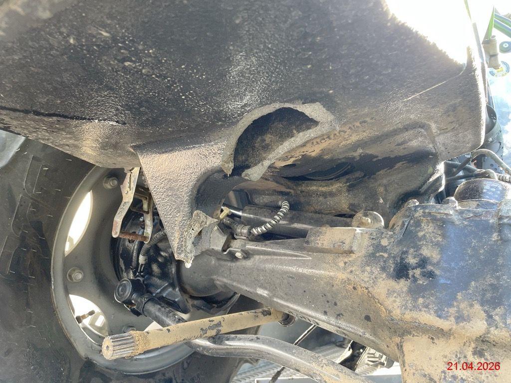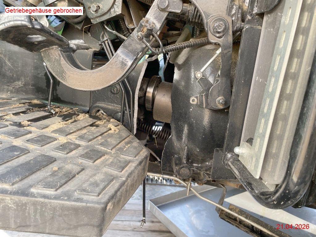 Beschreibung der Schäden: Vorderachse abgerissen und Aufnahme abgebrochen, div. Leitungen abgerissen, Getriebegehäuse gebrochen, Auspuff beschädigt, beide Felgen vo. beschädigt, Kotflügel v.l beschädigt, Kotflügel h.l beschädigt, Boden v.l verformt, div, Verkleidungen gebrochen Motor läuft nicht (Zustand unbekannt), Stundenzähler kann nicht mehr abgelesen werden, ca. 1'100 h vom Fz-Halter angegeben (Kabelstrang/Sicherungskasten beschädigt) Die spezielle Aufnahme am Auspuff für einen Auspuffschlauch wird vermutlich demontiert werden.