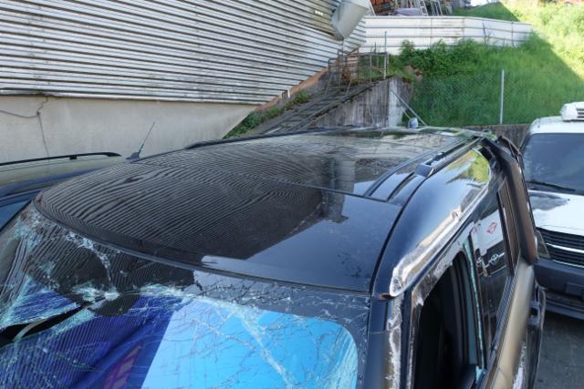 Dach eingedrückt.