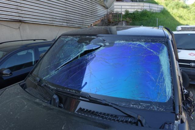 Windschutzscheibe ist gerissen. Heckscheibe ist zerbrochen / beschädigt. Türscheibe vorne links ist zerbrochen / beschädigt. Seitenscheibe hinten links ist zerbrochen / beschädigt.
