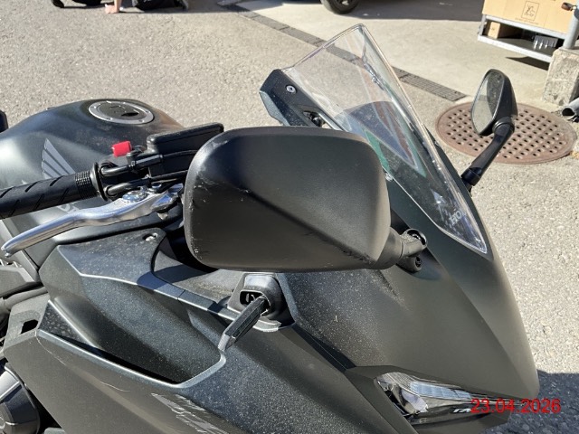 Beschreibung der Schäden: Lackschaden bei Tank r., Motordeckel r.-, Fussraster r.-, Bremspedal -, Rückspeiegel-, Verkleidungen r.-, Auspufftopf-, Gabelholmen unten r.- zerkratzt, Lenkstummel r. deformiert, Bremshebel r. gebrochen, Rahmen gemäss Protokll deformiert Vorbestandene Schäden: Seite links: Rückspiegel zerkratzt, Ständerbügel verbogen